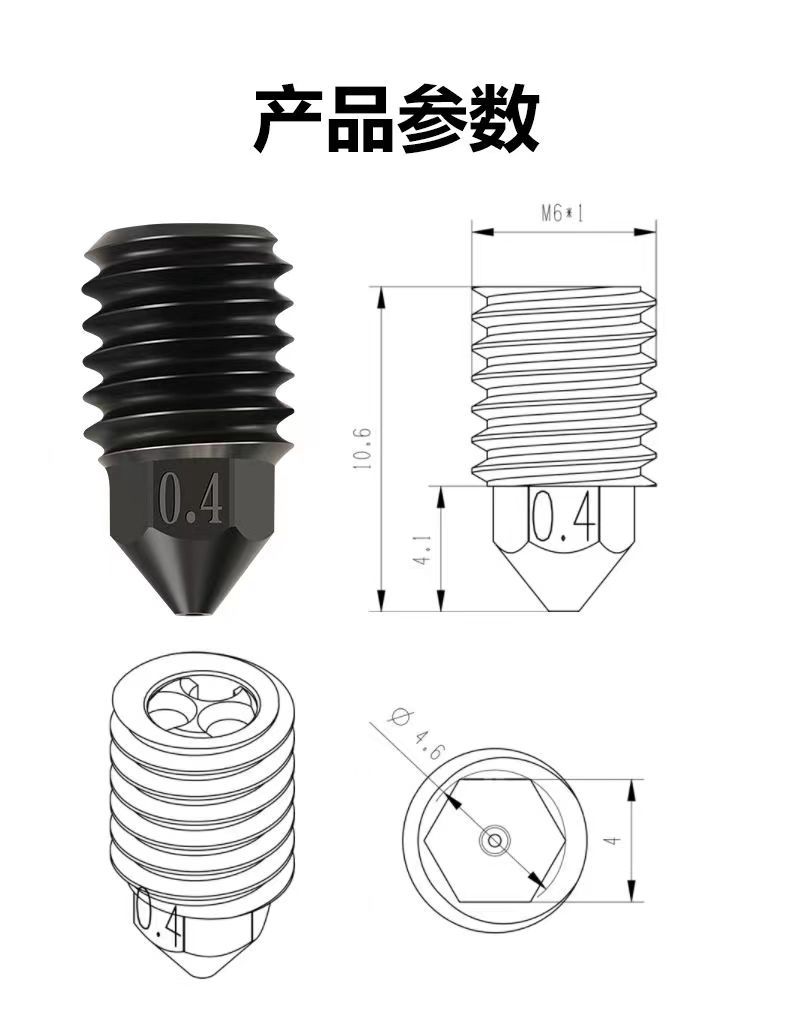Lab X1 CHT Hardened Steel Nozzle 0.4 mm-1PCS, Lab X1 CHT Hardened Steel Nozzle 0.6 mm-1PCS