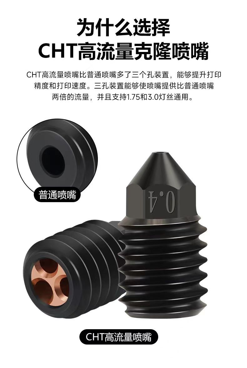 Boquilla Clon de Tres Orificios de Acero Endurecido de Alto Flujo Cht Resistente a Altas Temperaturas Boquilla de Impresión Accesorios para Impresora 3D