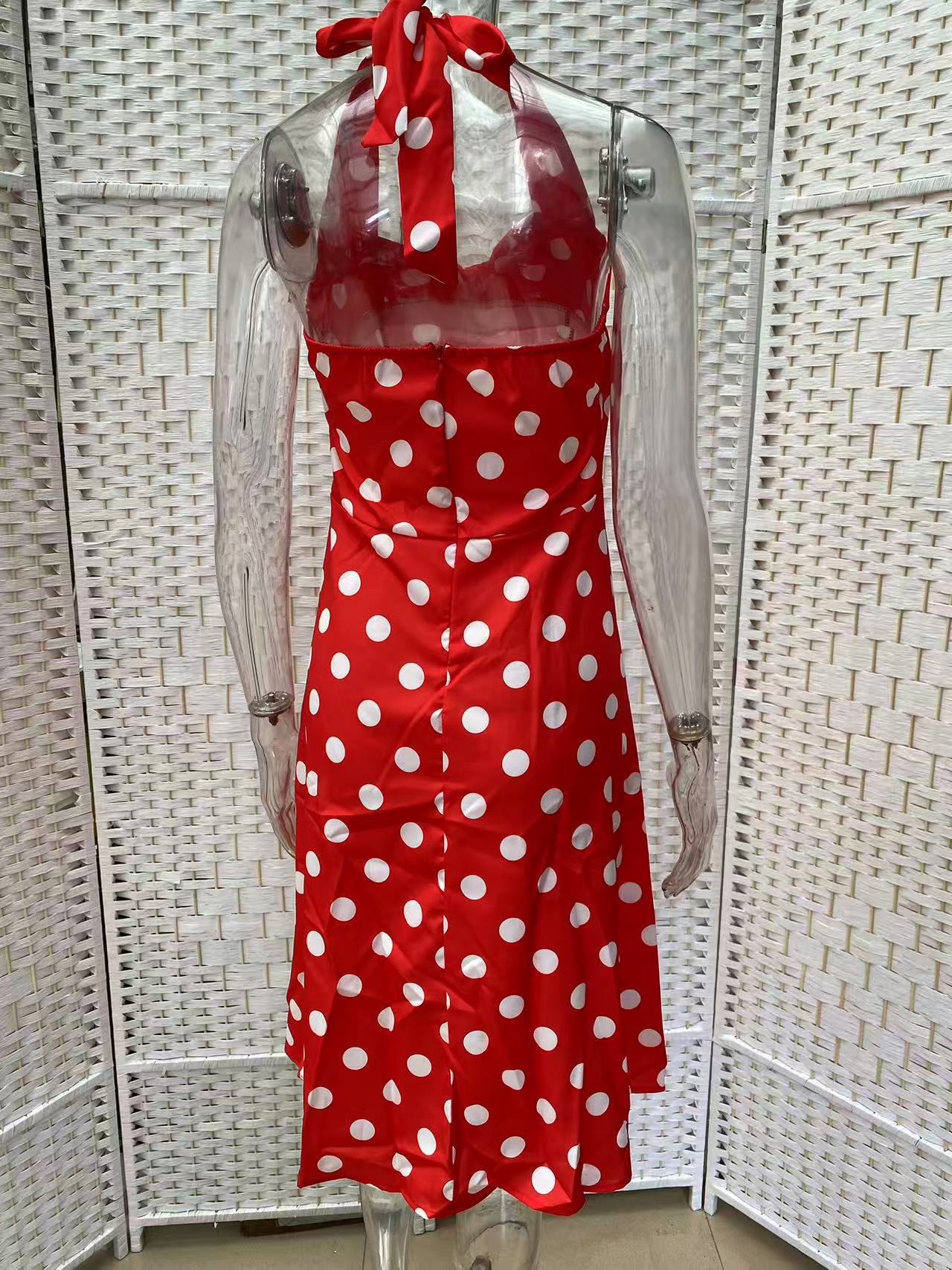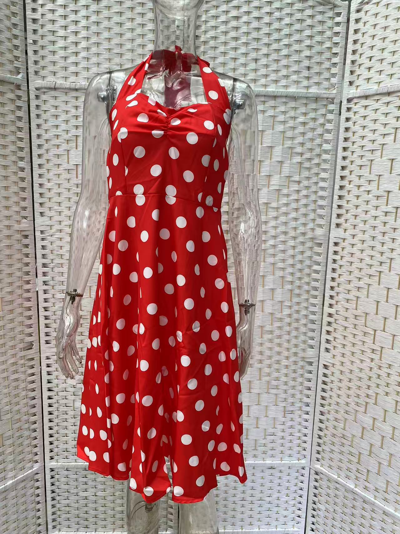 Vestido adelgazante de cintura estilo Hepburn retro de los años 50 con escote en V y lunares de nueva ola.