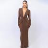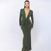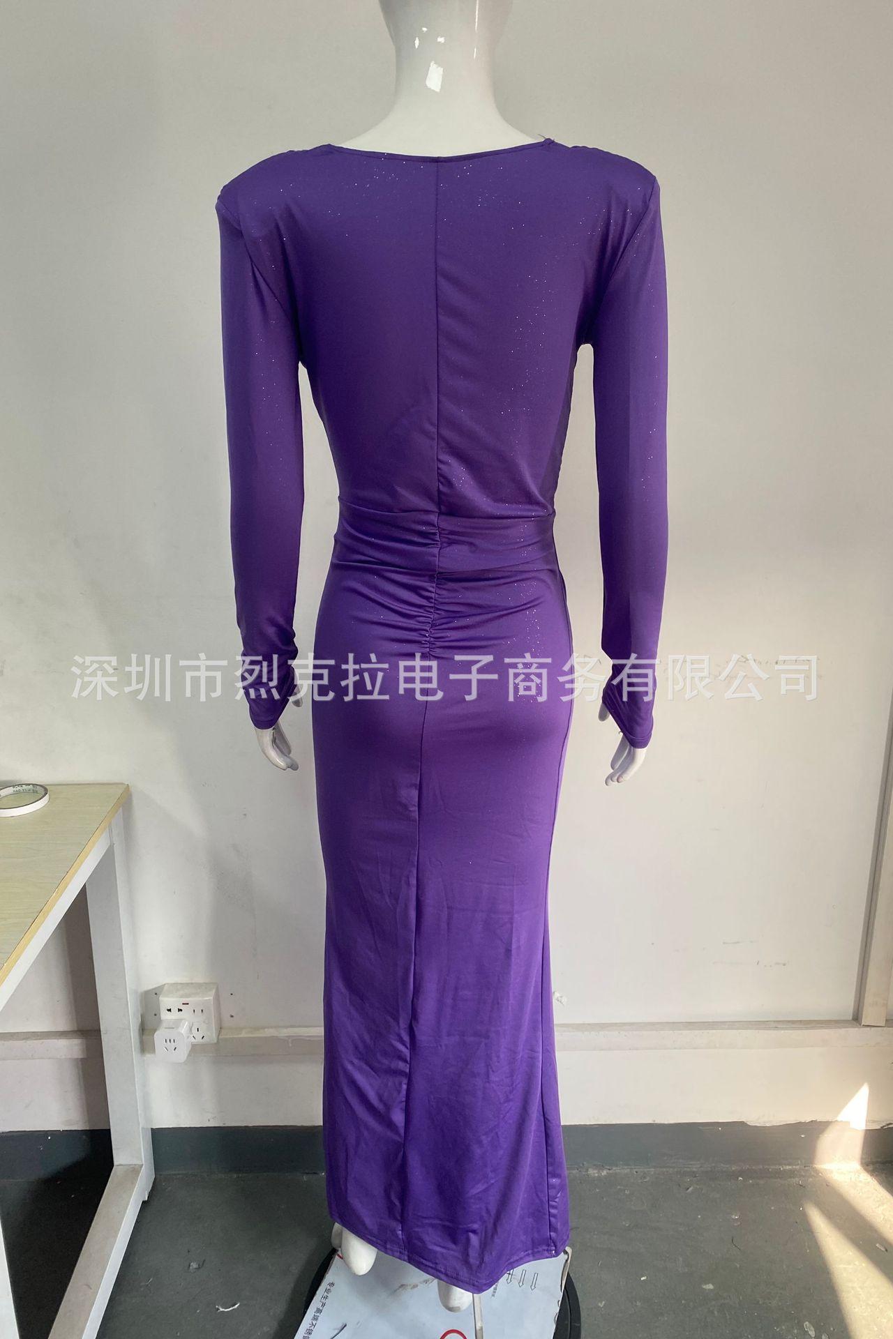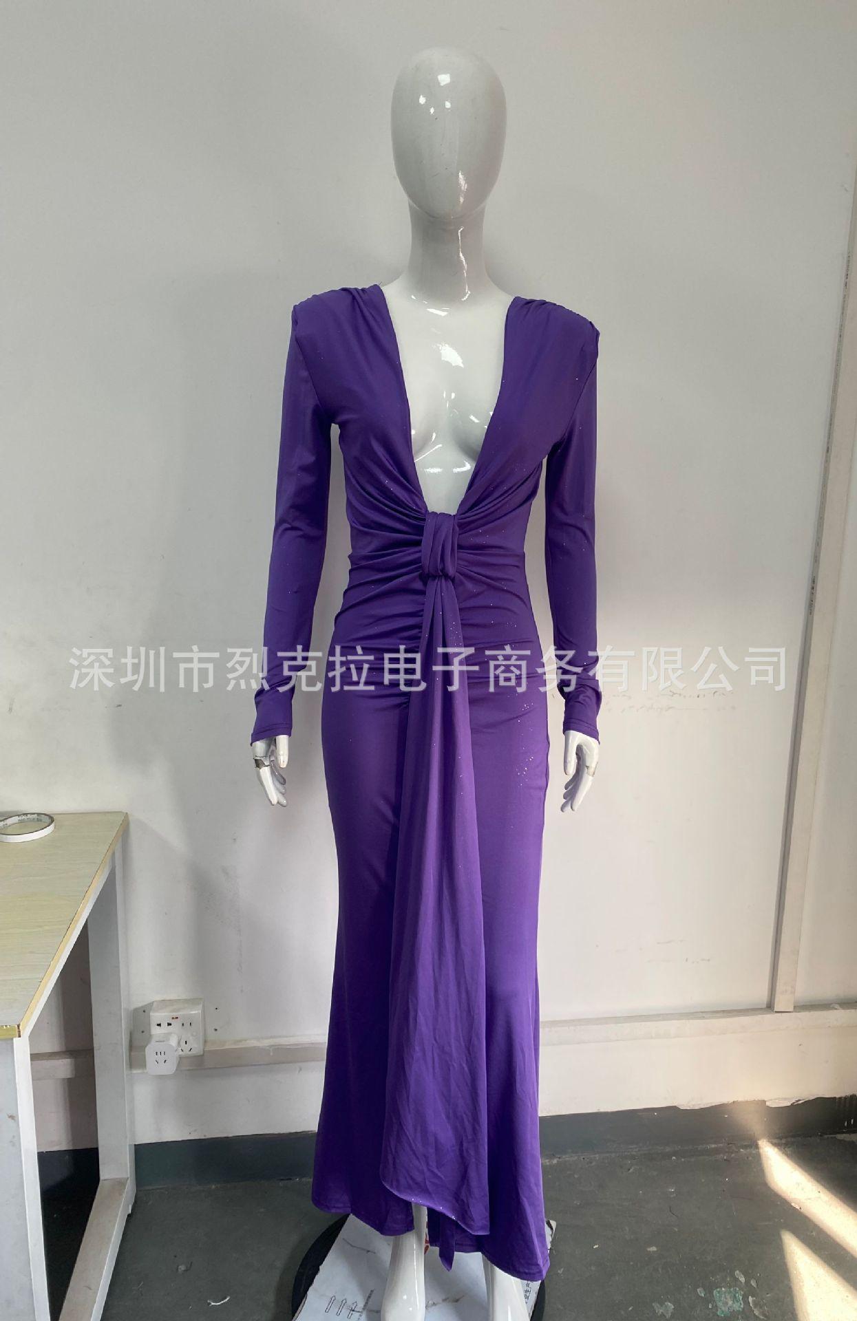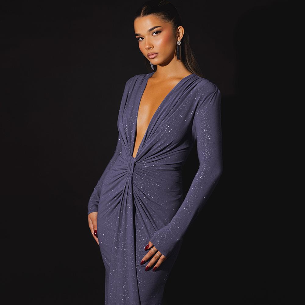 Europeo y Americano Transfronterizo 2025 Otoño e Invierno Elegante Escote en V Profundo con Cinta Falda Larga Sexy Abertura Vestido Ajustado Mujer Venta al por Mayor