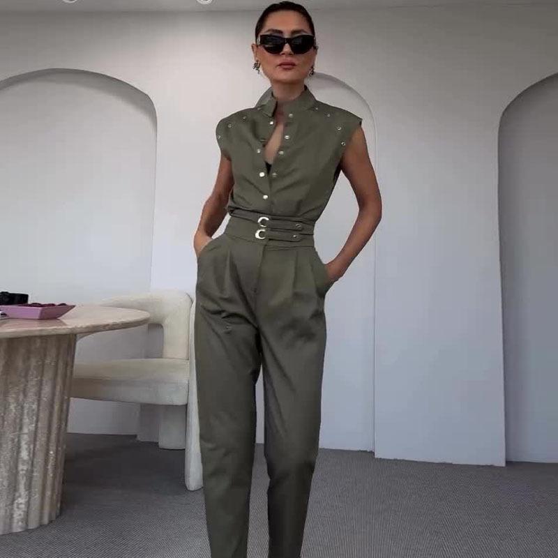 2024 Amazon Europeo y Americano Comercio Exterior Nuevo Estilo Moda Elegante para Viajero Conjunto de Dos Piezas de Tops y Pantalones