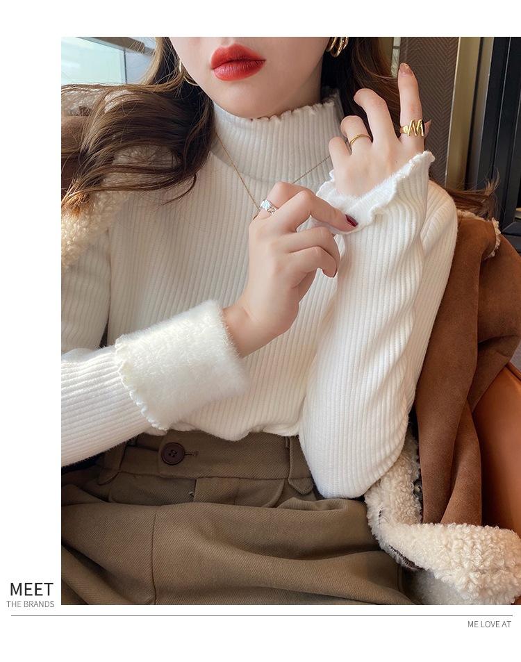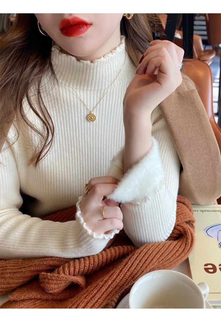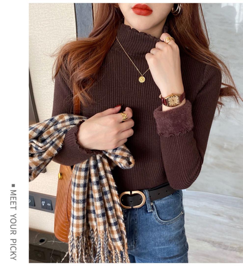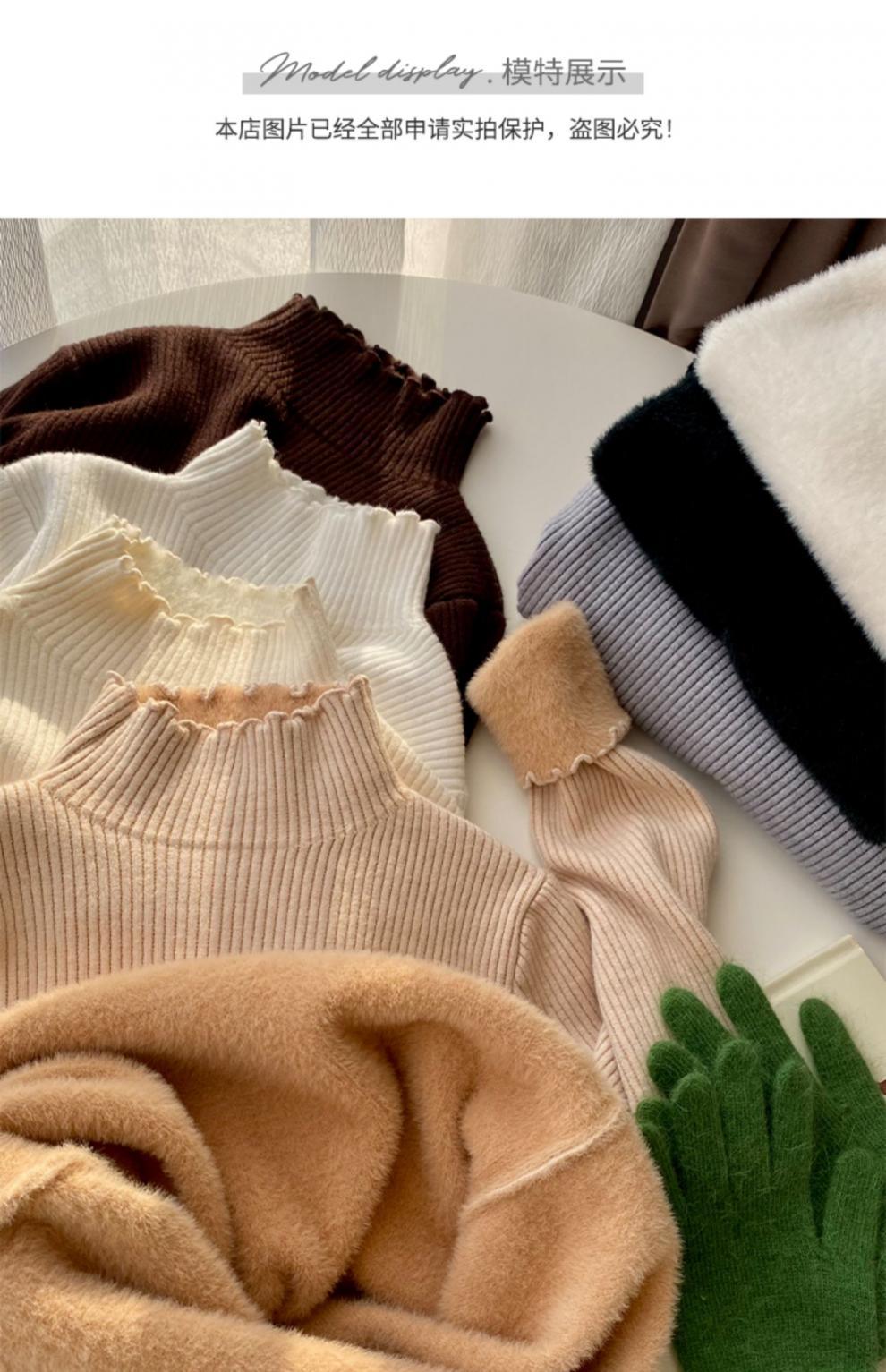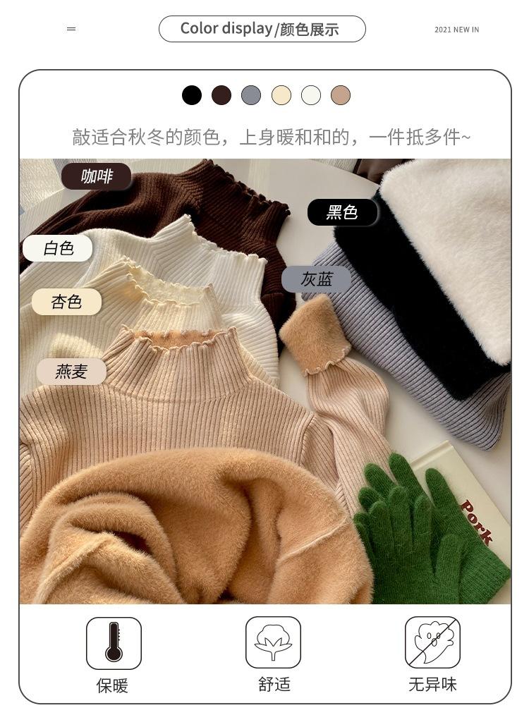 Suéter de Estilo Holgazán para Mujer en Otoño e Invierno Cuello Medio Alto Suéter Tejido de Fondo para Mujer Cálida Capa Interior Gruesa Top de Terciopelo de Una Pieza