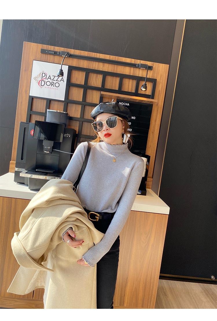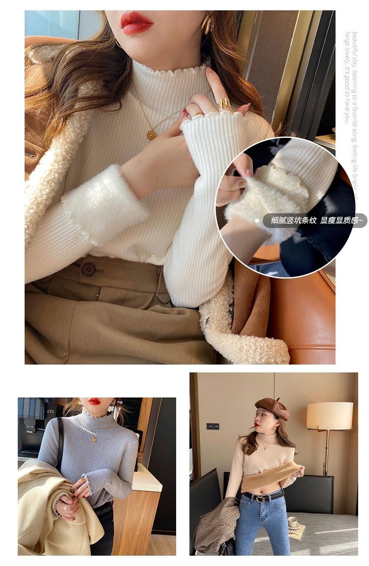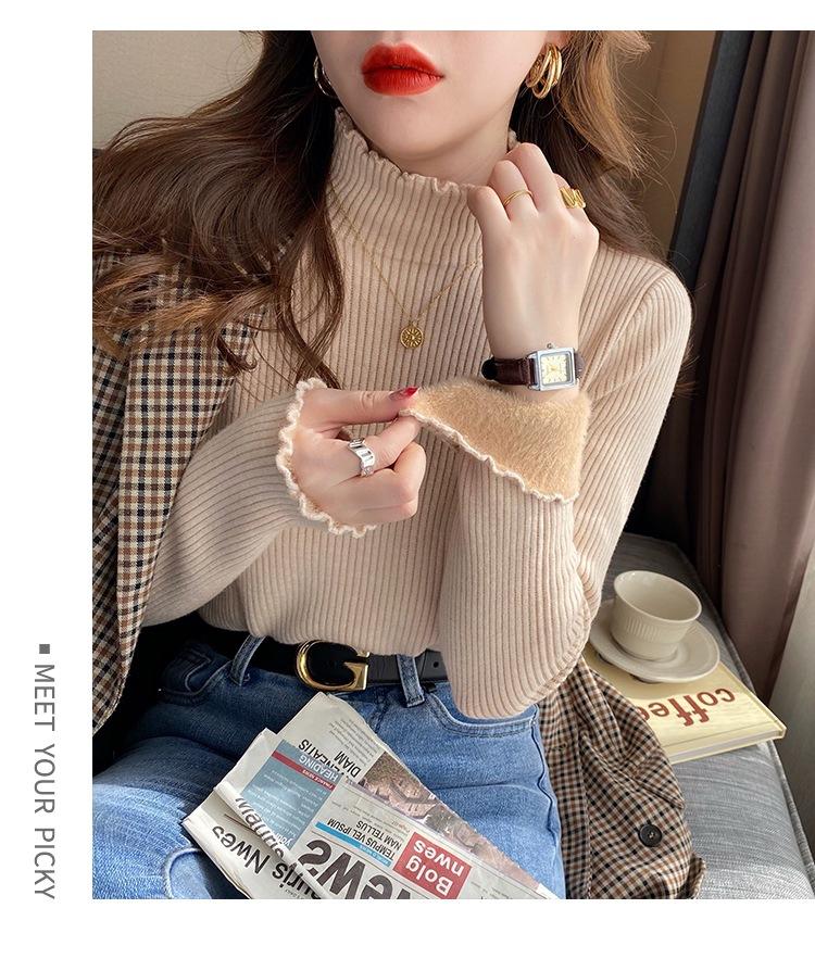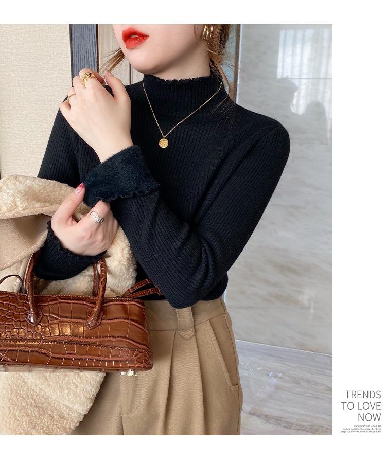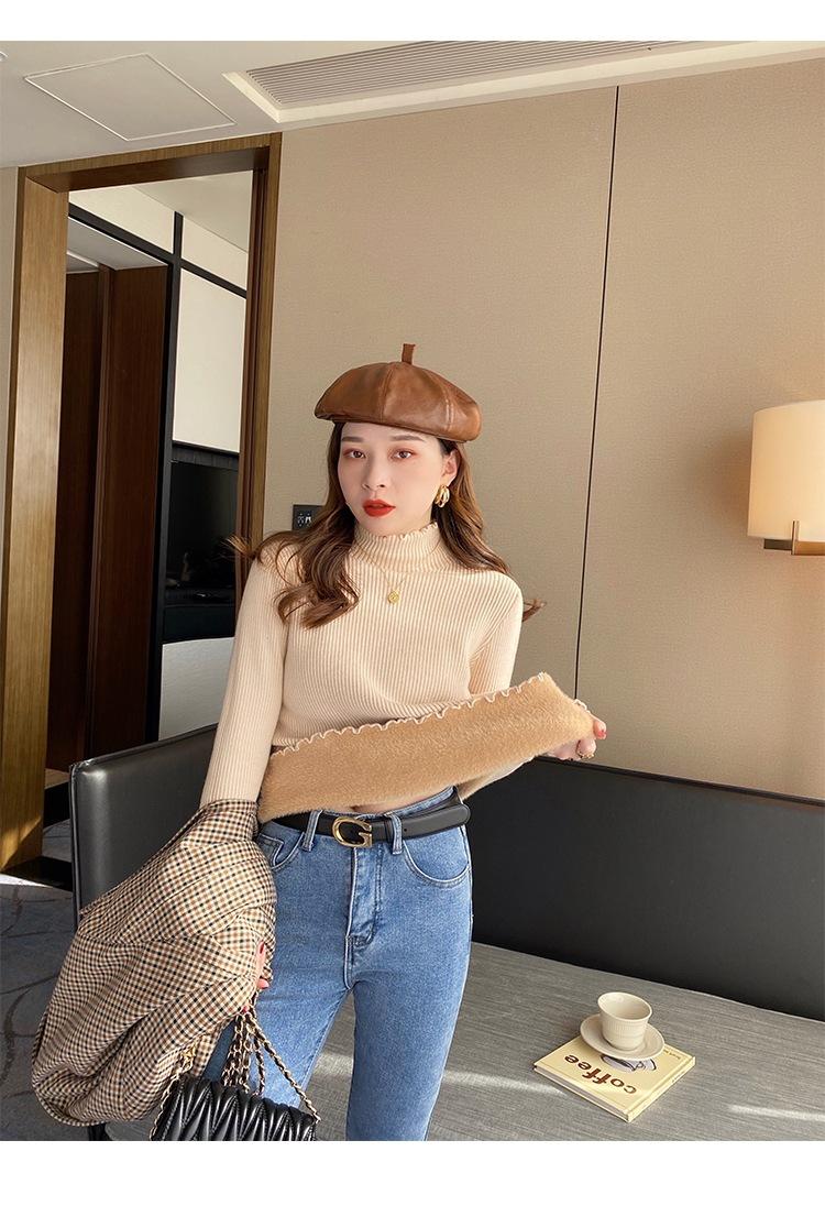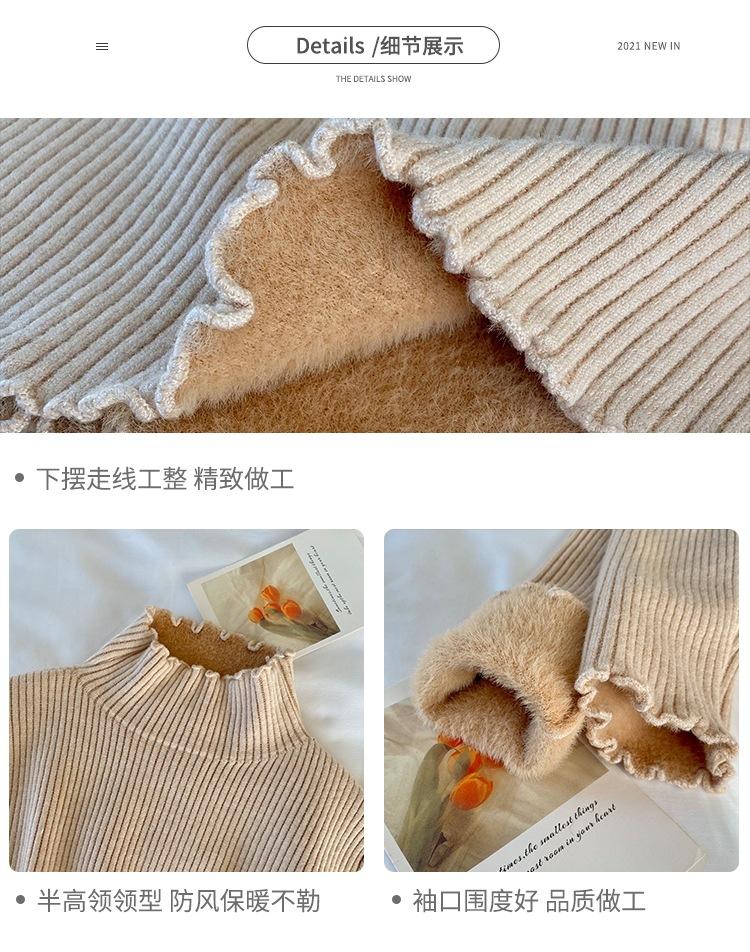 Suéter de Estilo Holgazán para Mujer en Otoño e Invierno Cuello Medio Alto Suéter Tejido de Fondo para Mujer Cálida Capa Interior Gruesa Top de Terciopelo de Una Pieza