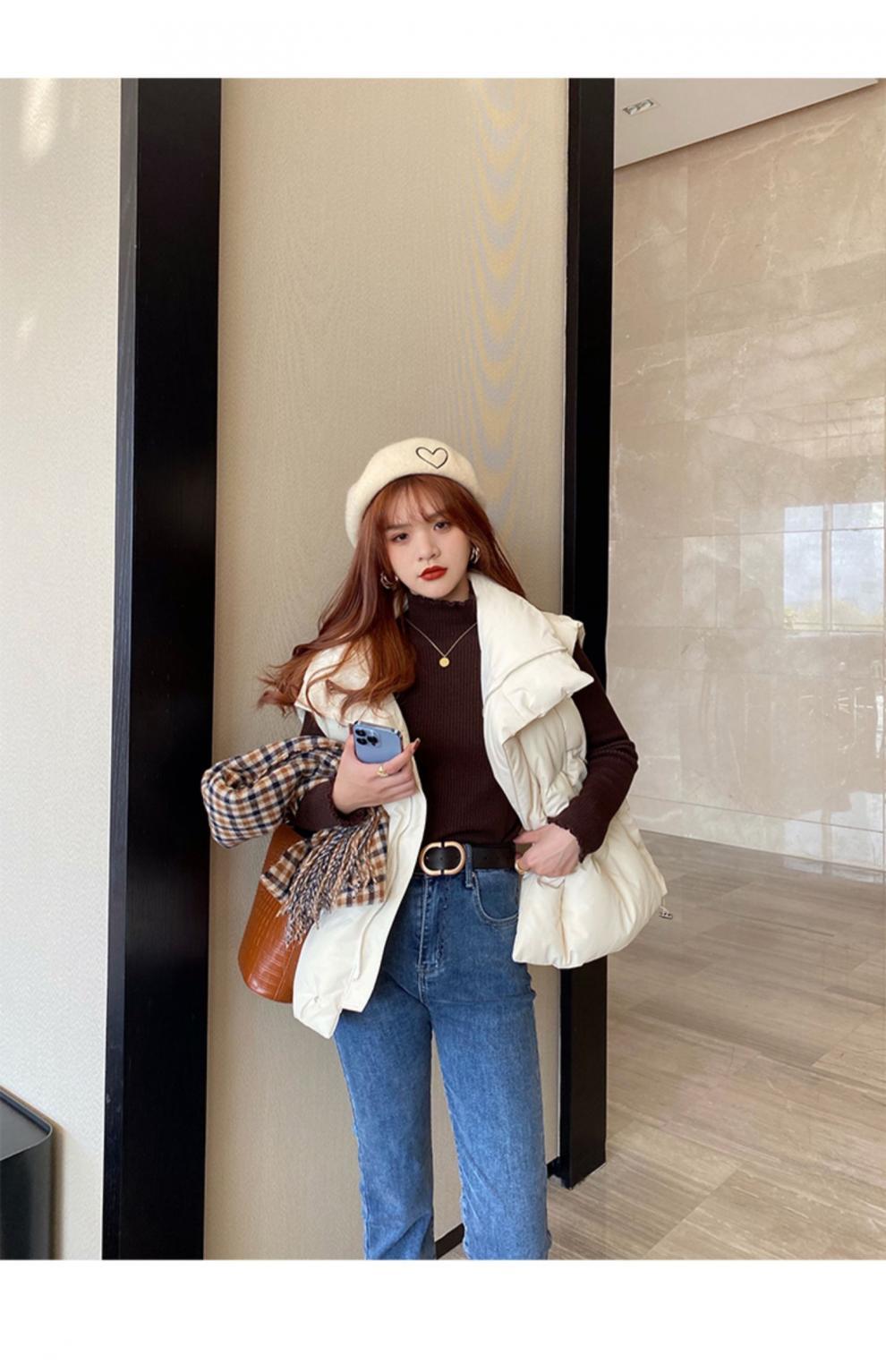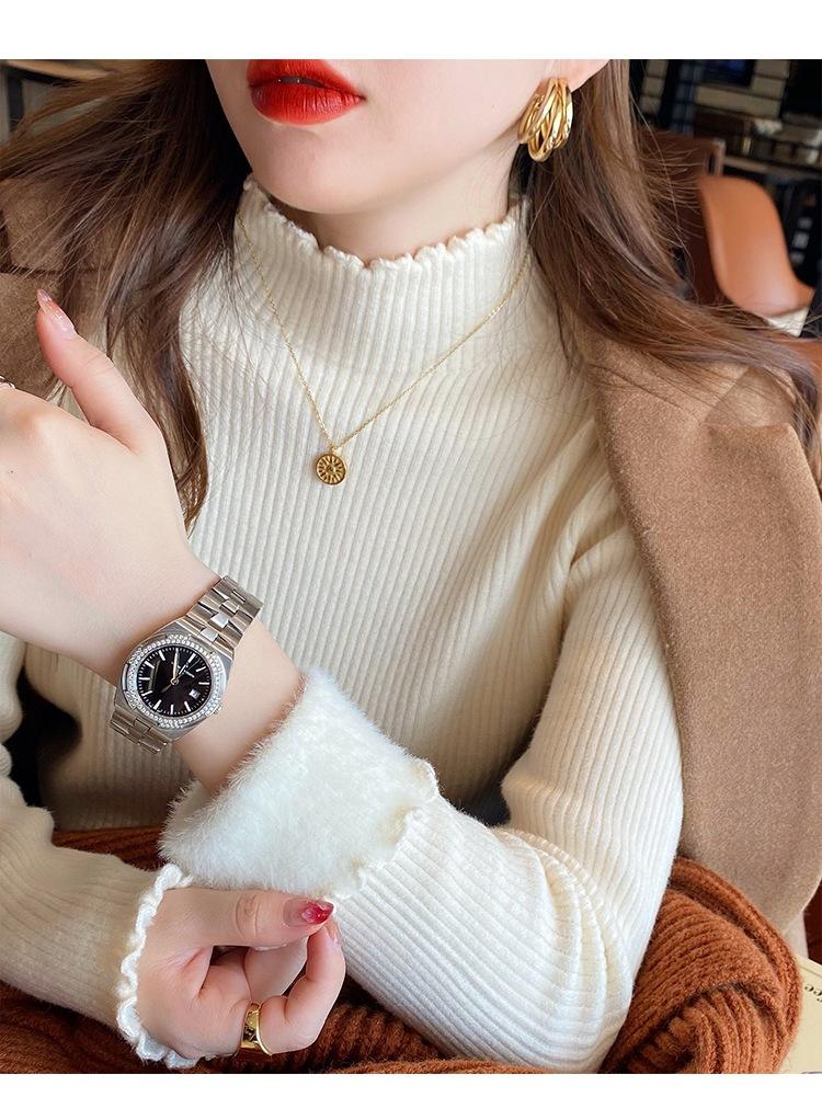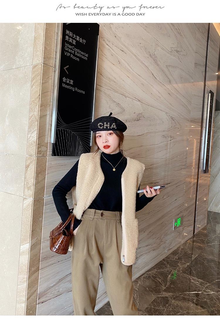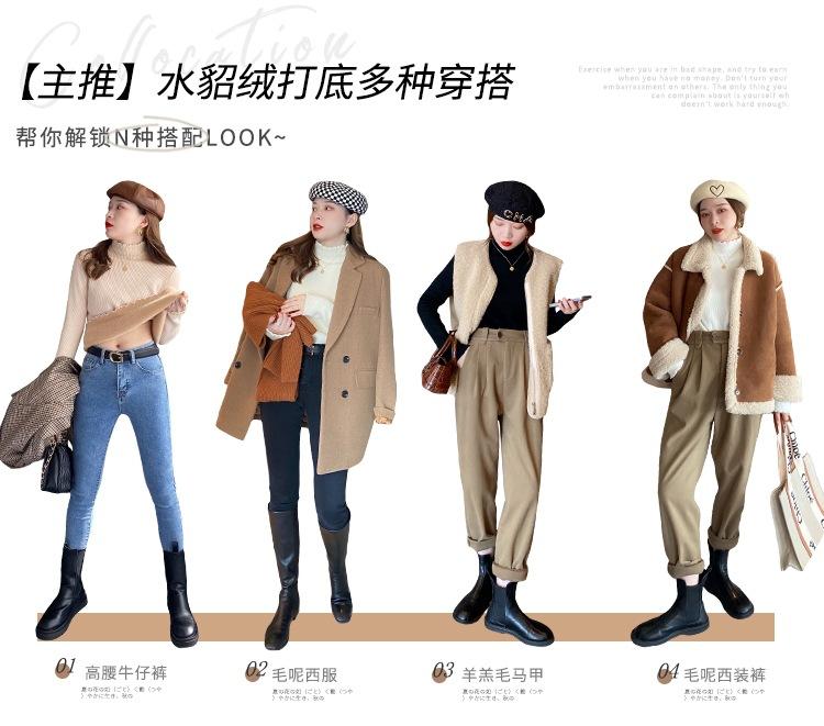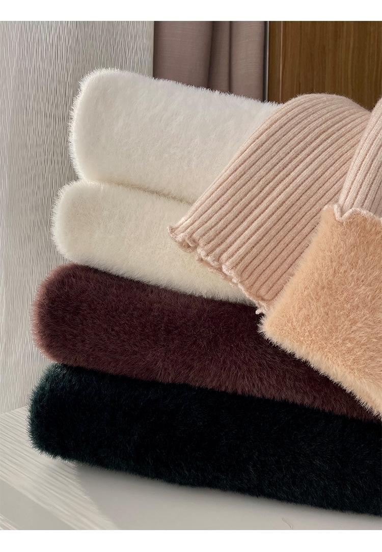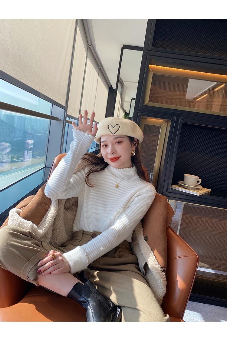 Suéter de Estilo Holgazán para Mujer en Otoño e Invierno Cuello Medio Alto Suéter Tejido de Fondo para Mujer Cálida Capa Interior Gruesa Top de Terciopelo de Una Pieza