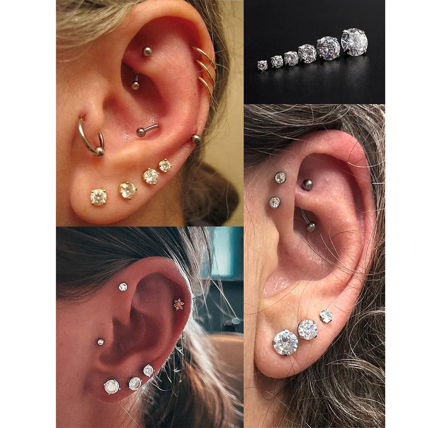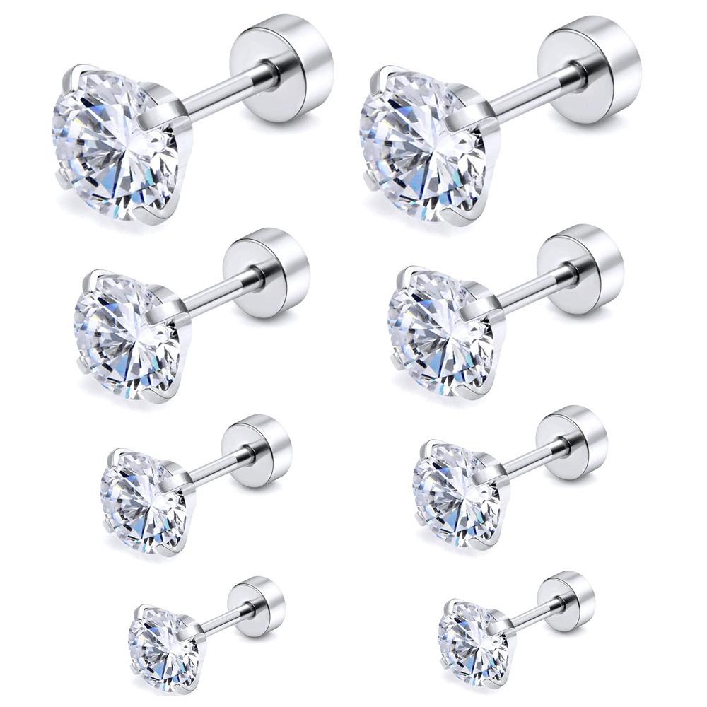 Aretes Transfronterizos de Acero Inoxidable de 4 Pares Zirconia Blanca de 4 Garras Aretes de Fondo Blanco Traje Combinado Amazon AliExpress Venta Caliente