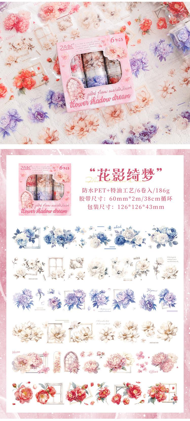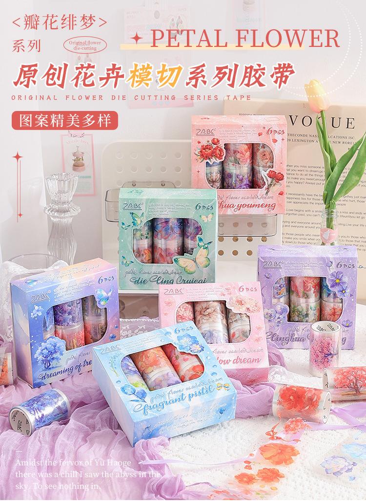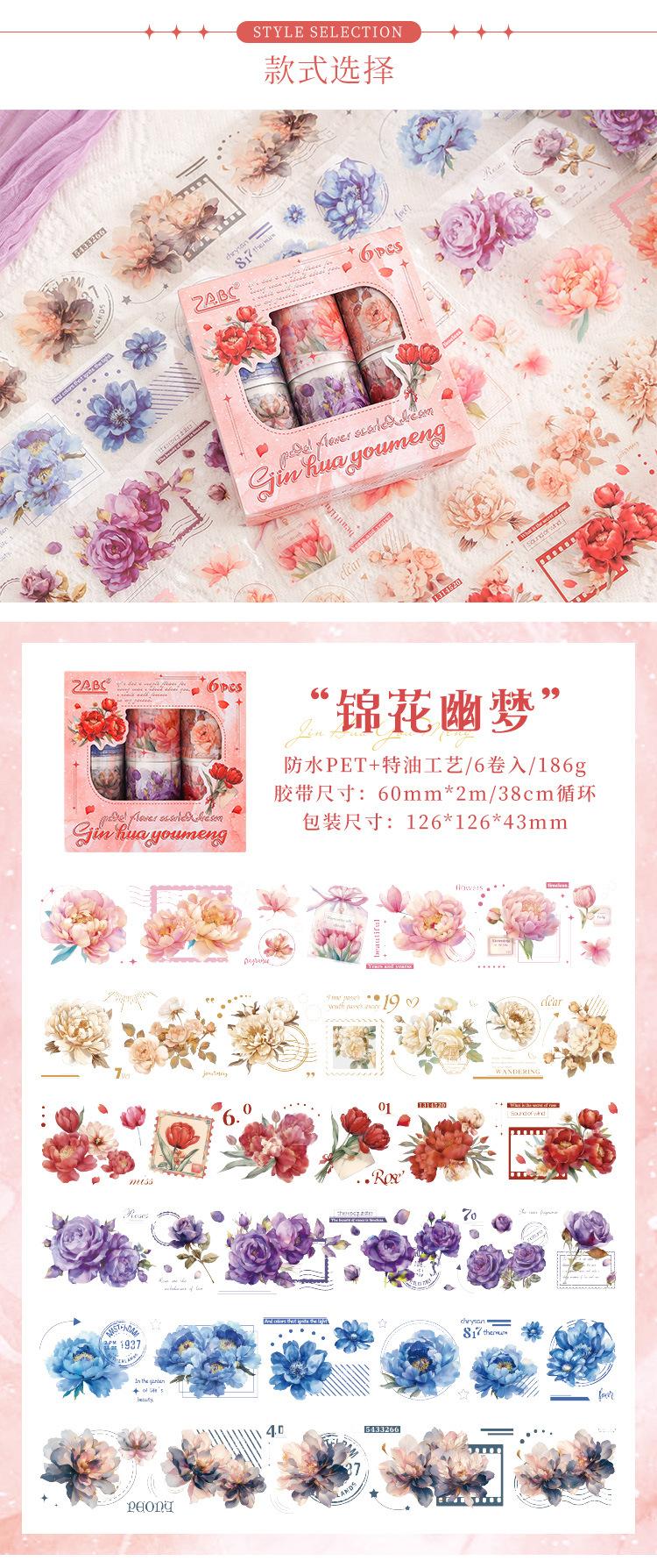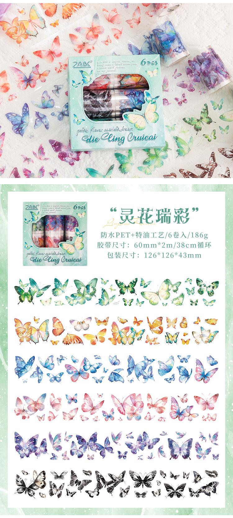 Juego de cinta adhesiva especial de PET con diseño de flor de solapa Fei Meng, resistente al agua y al aceite, para manualidades, diario, pegatinas, paisaje transfronterizo, flores y mariposas.