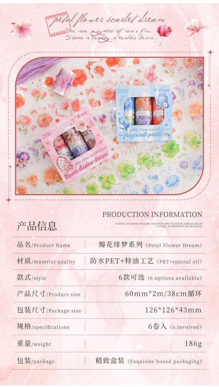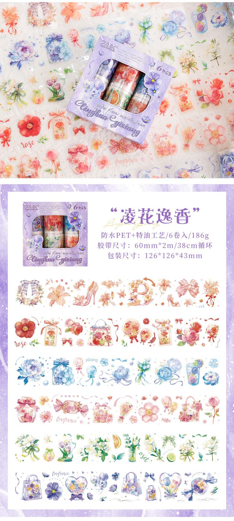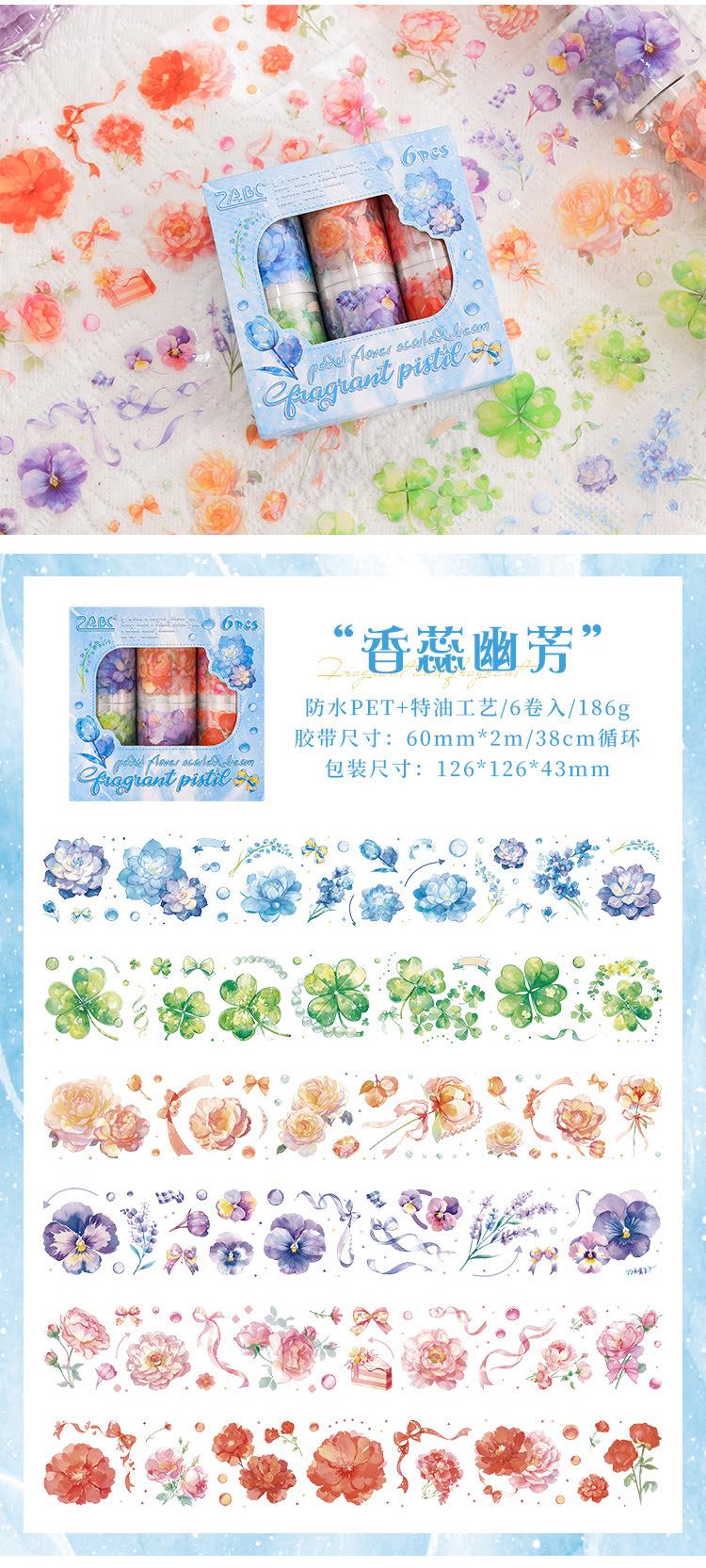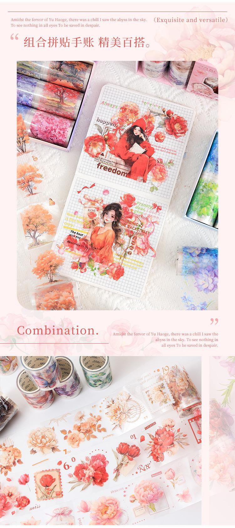 Juego de cinta adhesiva especial de PET con diseño de flor de solapa Fei Meng, resistente al agua y al aceite, para manualidades, diario, pegatinas, paisaje transfronterizo, flores y mariposas.