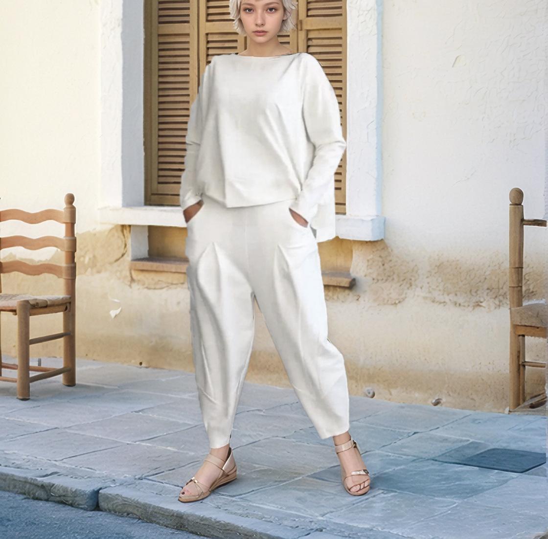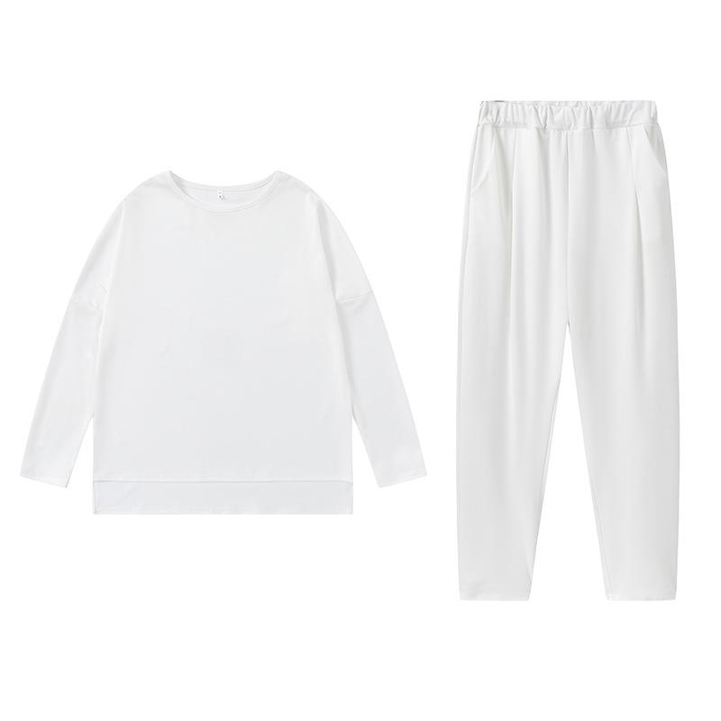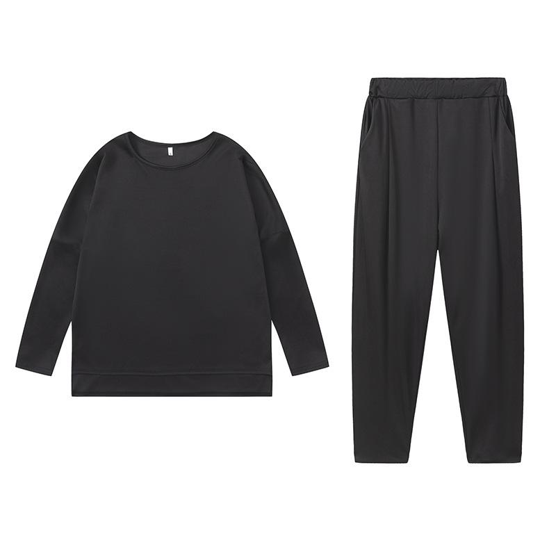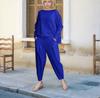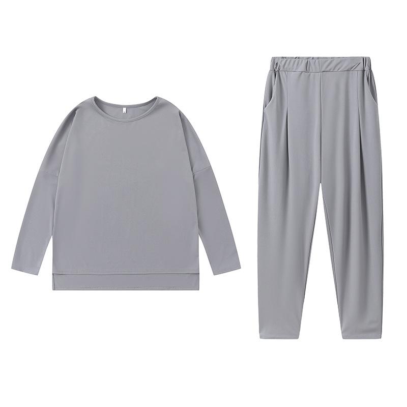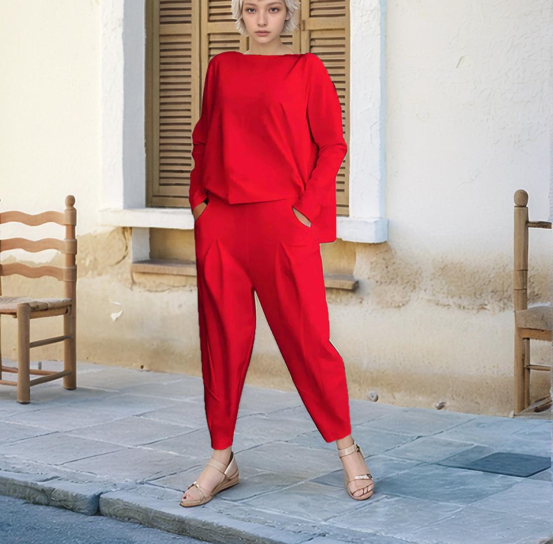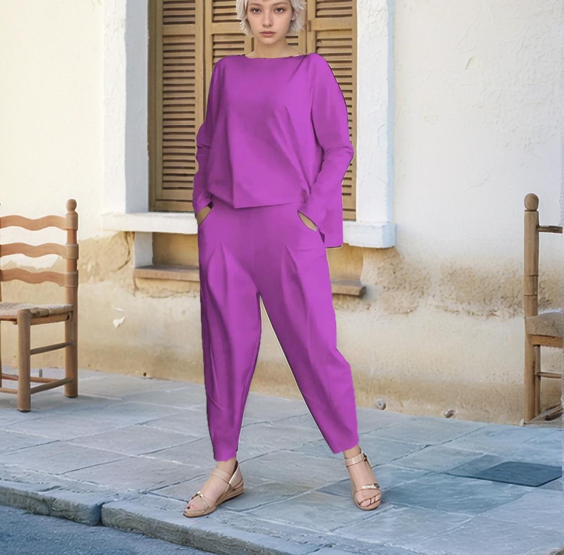 2024 otoño e invierno nuevo europeo y americano transfronterizo comercio exterior para mujer color sólido cuello redondo manga larga traje pantalones con bolsillos para mujer pantalones para mujer