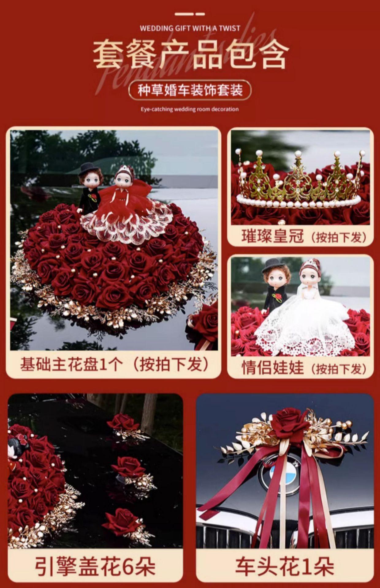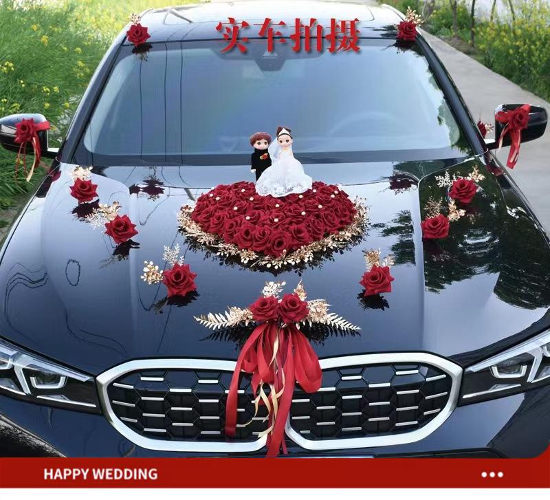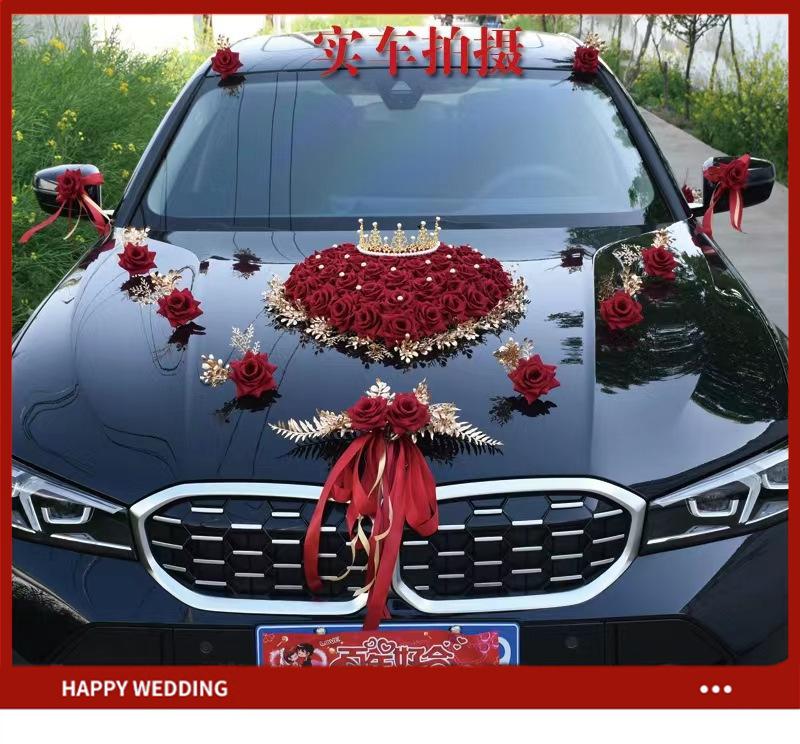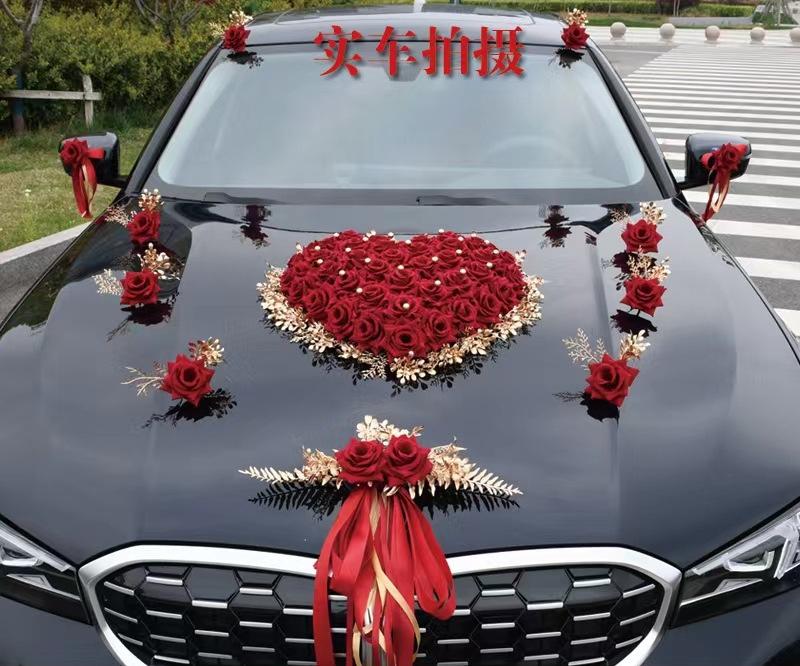 Decoración de coche de boda flor de cabeza de coche flor principal carroza boda arreglo floral avanzado flor de coche de cabeza ventosa de espuma floral para equipo de boda
