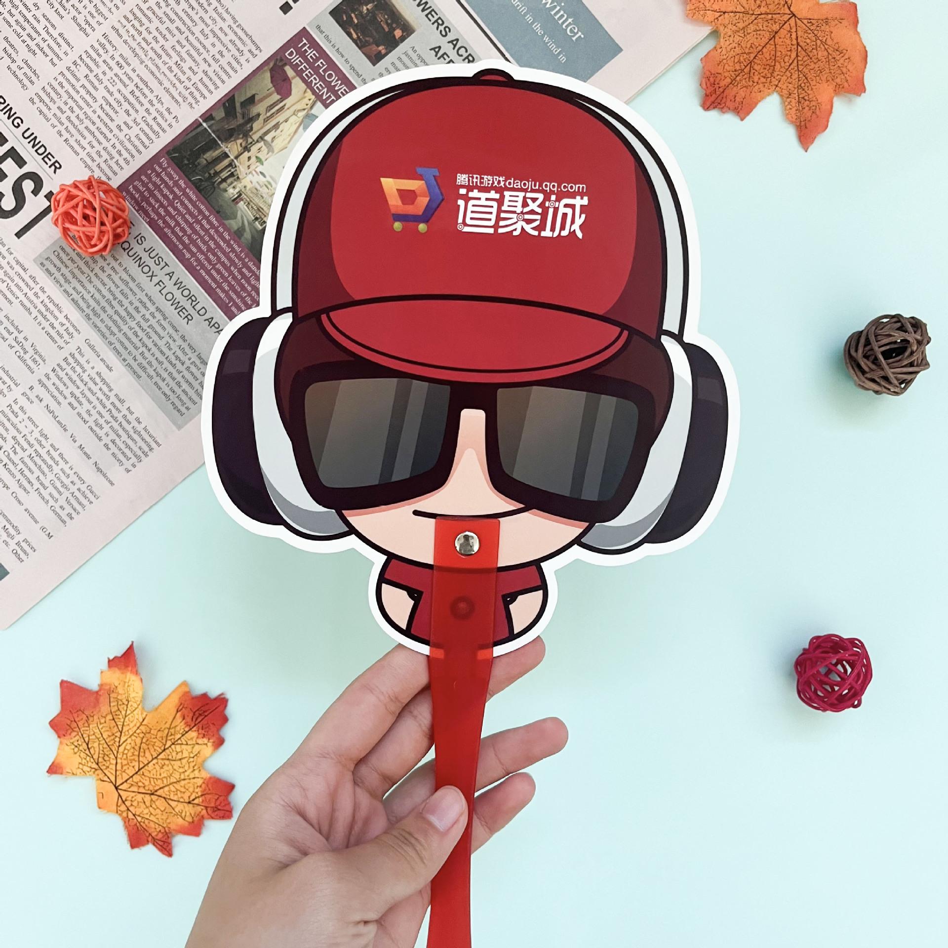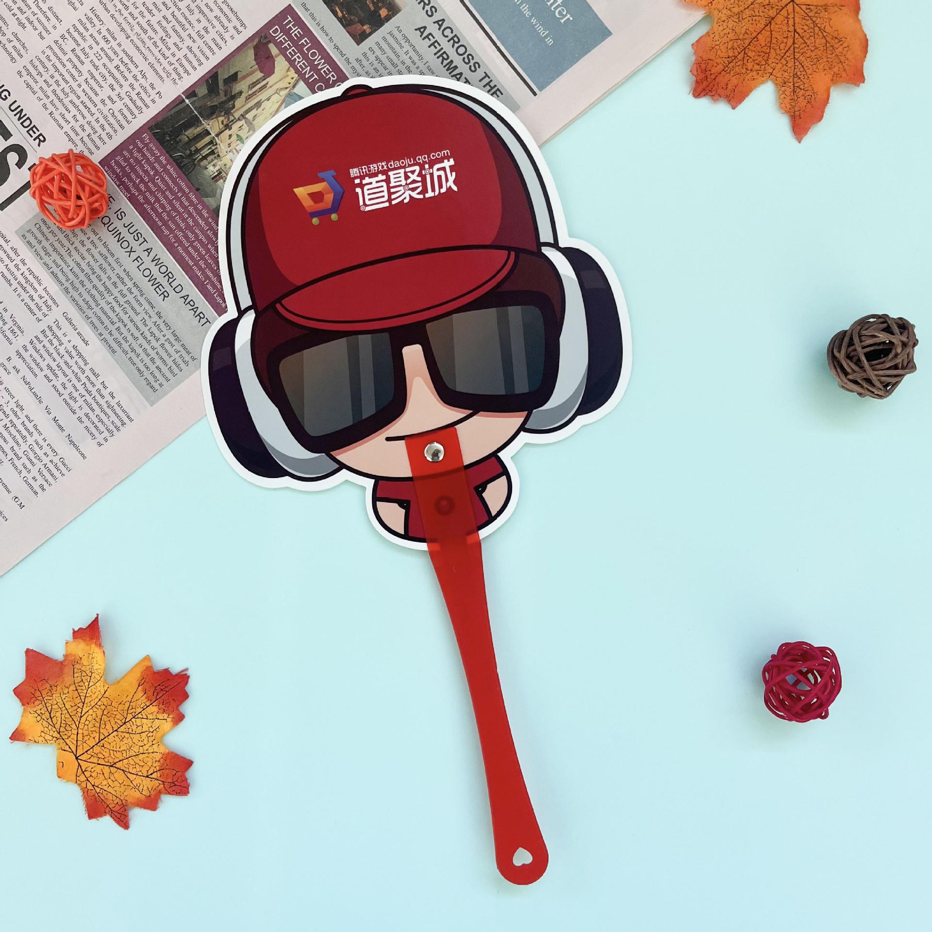 Abanico publicitario de plástico PP al por mayor de fábrica, abanico publicitario de dibujos animados creativos, abanico promocional de reclutamiento