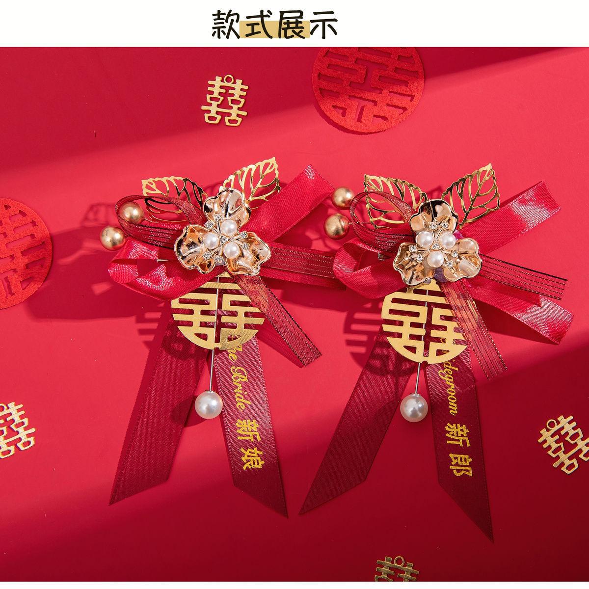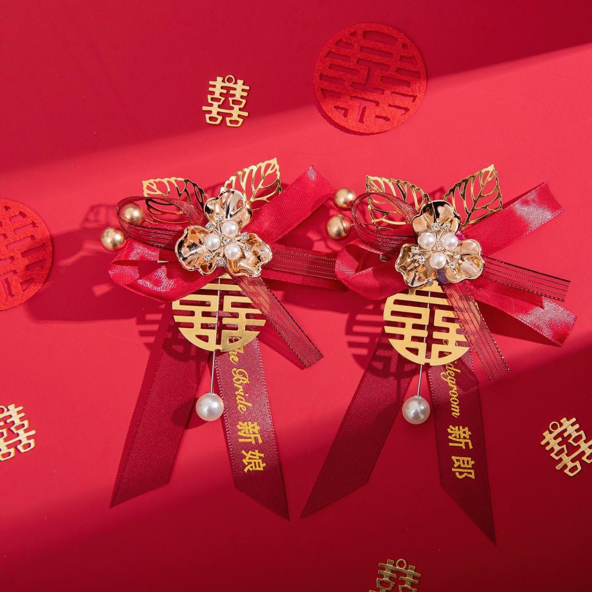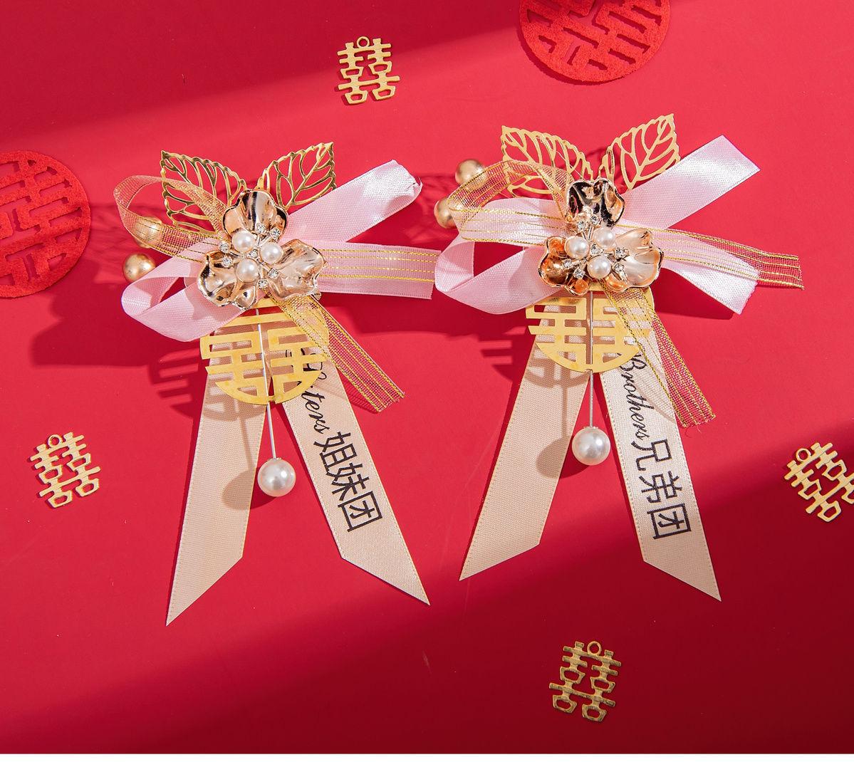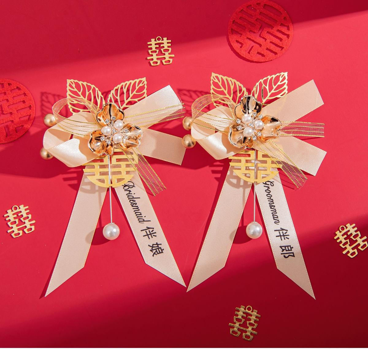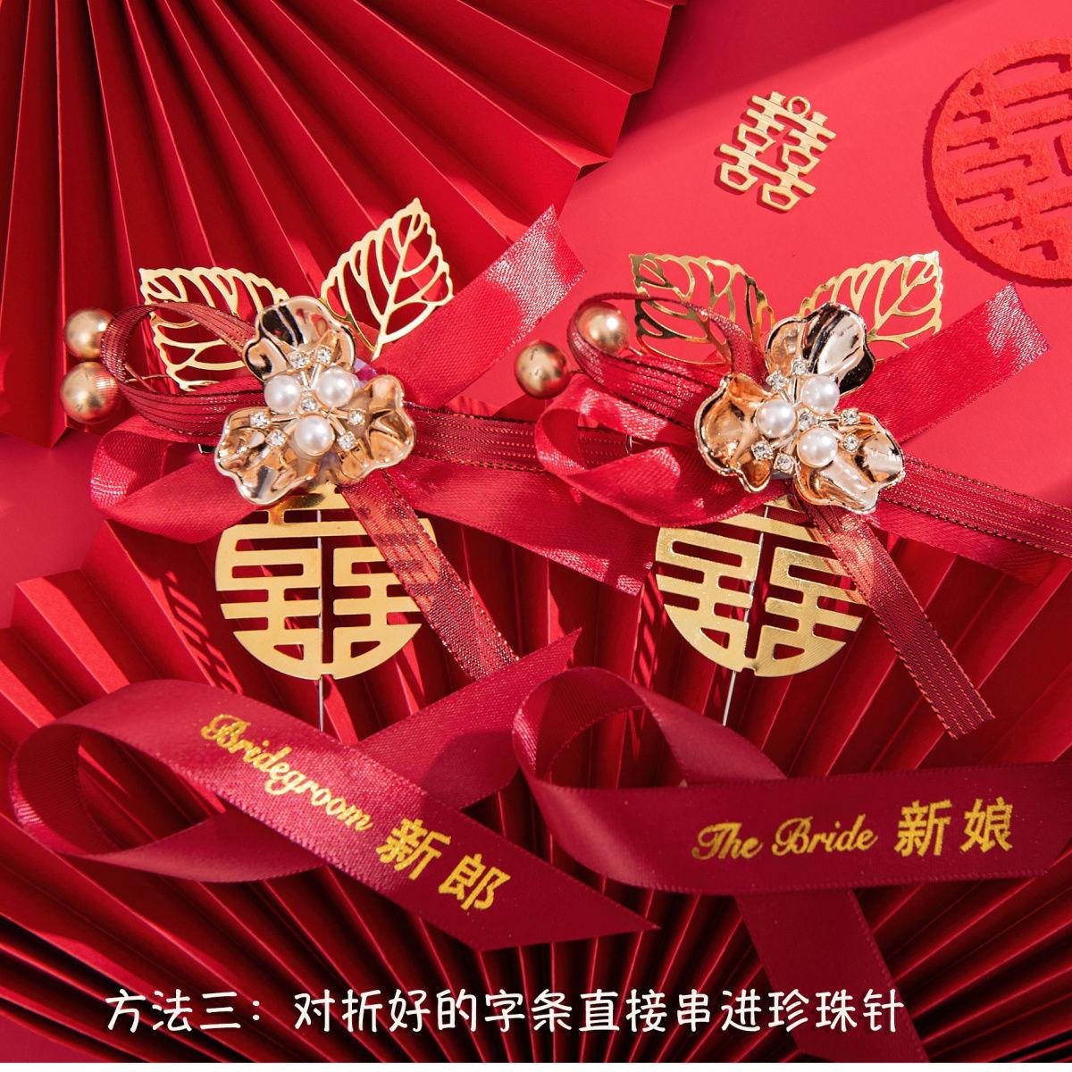 A pair of pearl corsages [burgundy father-in-law and mother-in-law]