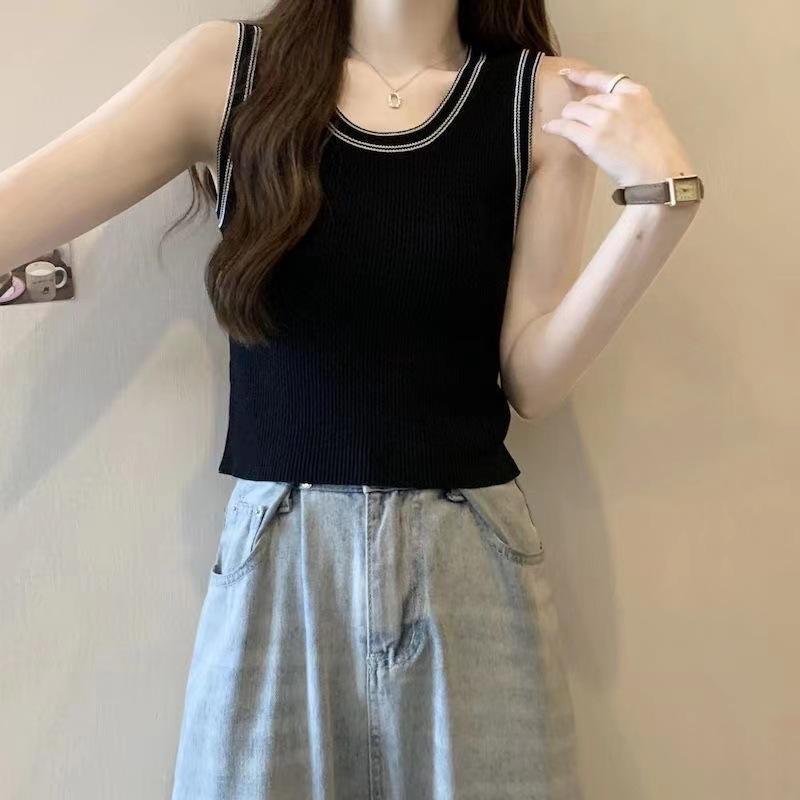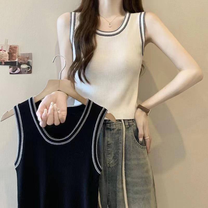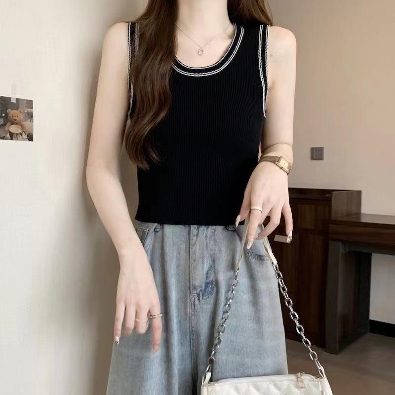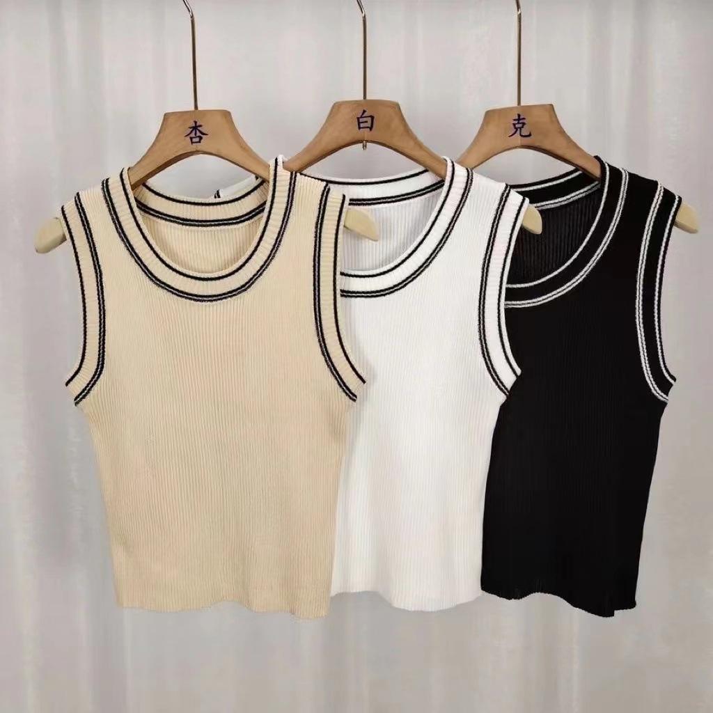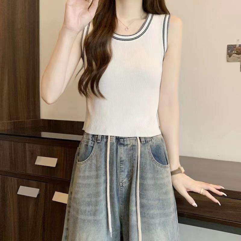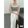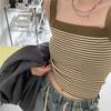 Camisola de punto a rayas francesas para mujer, novedad de verano 2024, top corto fino con cuello en contraste y todo a juego