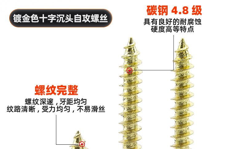 Tornillo dorado KA, tornillo autorroscante de cabeza avellanada cruzada, tornillo Zigong de cabeza plana, tornillo autoperforante chapado en oro M2/M3/M4