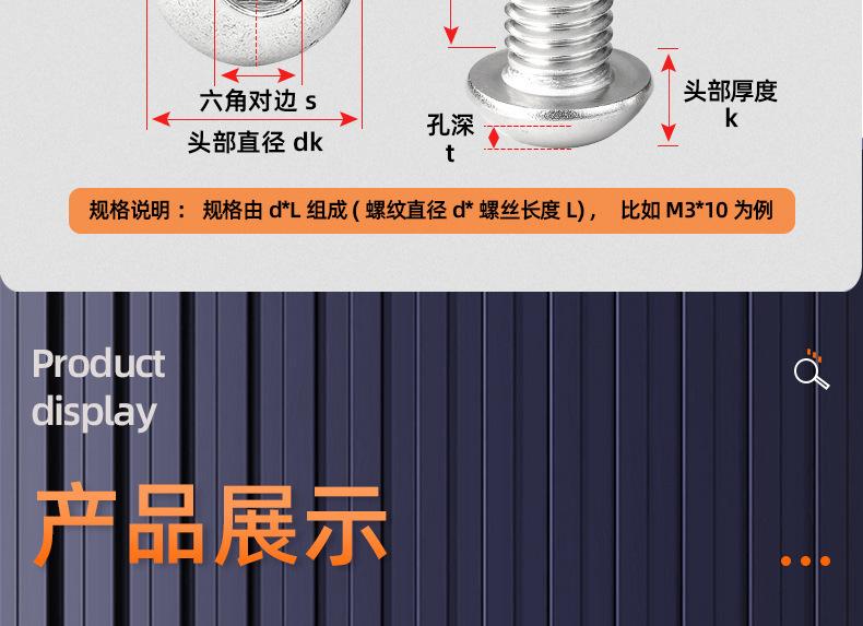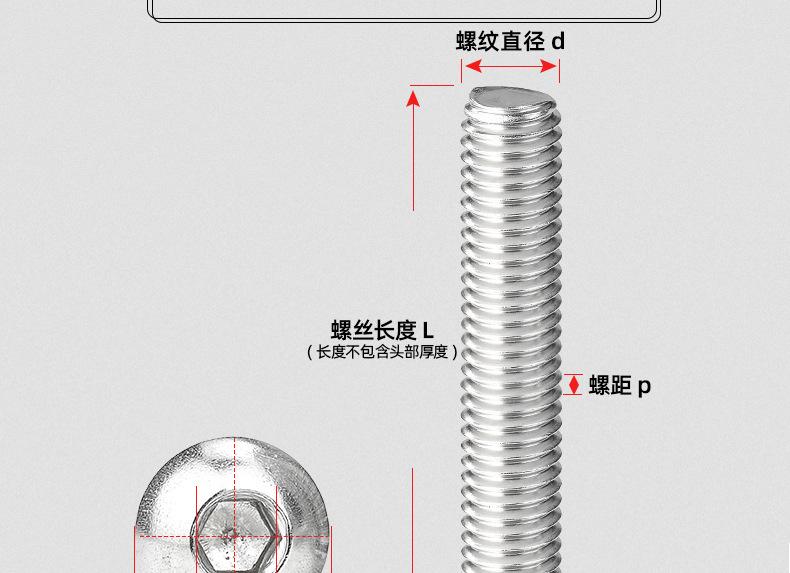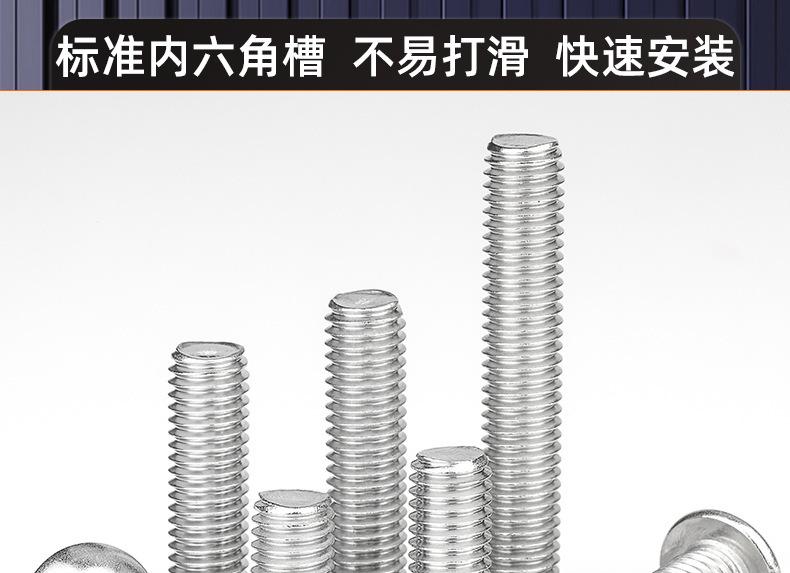 Tornillo de cabeza hueca hexagonal de cabeza semicircular de acero inoxidable 304, tornillo de cabeza plana, tornillo de cabeza hueca hexagonal, tornillo de 1/4