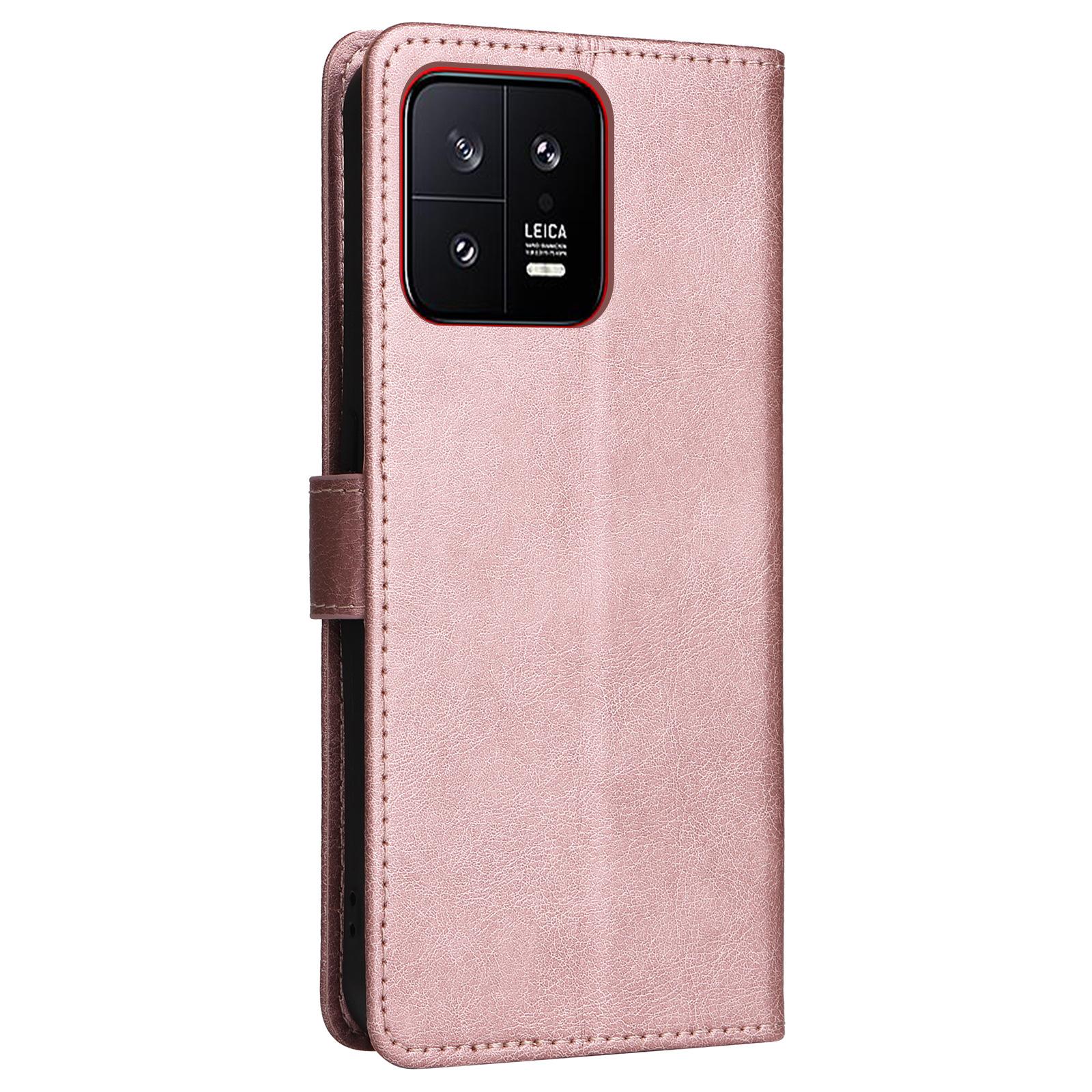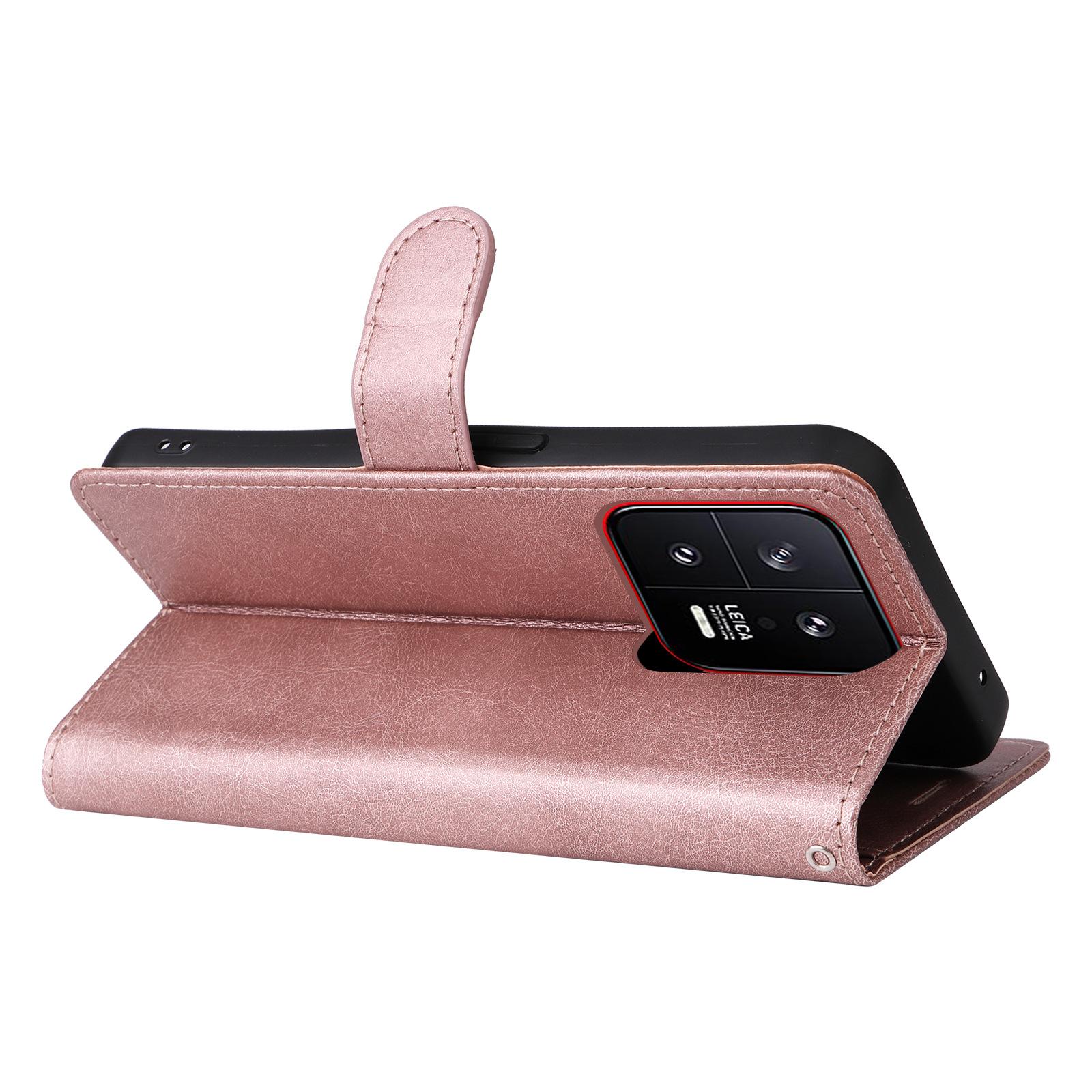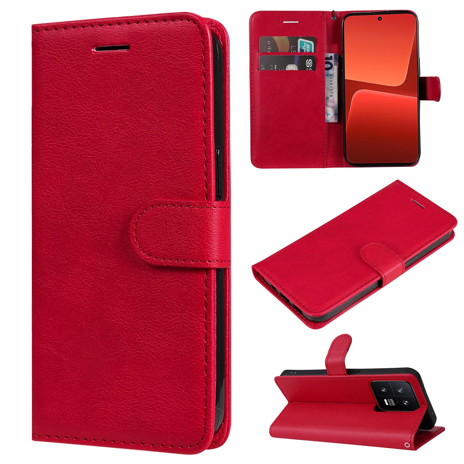 Funda de cuero para teléfono móvil Samsung A54, funda protectora con patrón de cuero de color sólido para Xiaomi 13, funda protectora tipo billetera con tarjetero, color arroz rojo, Note12