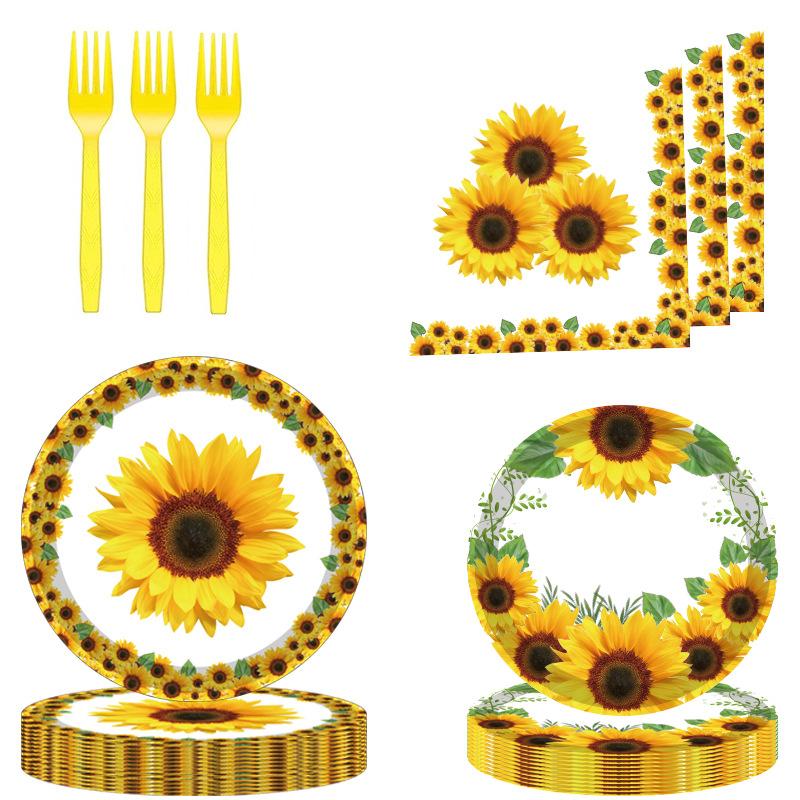 Vajilla navideña para el Festival del Girasol, 4 piezas, plato de papel, toalla de papel, vaso de papel