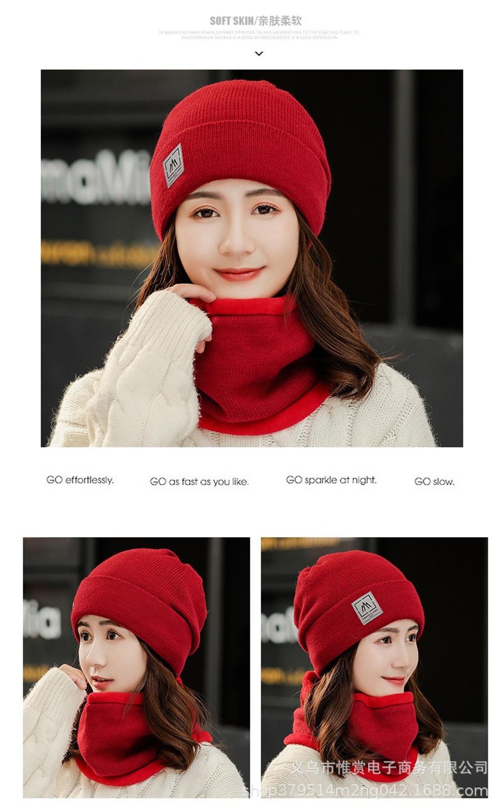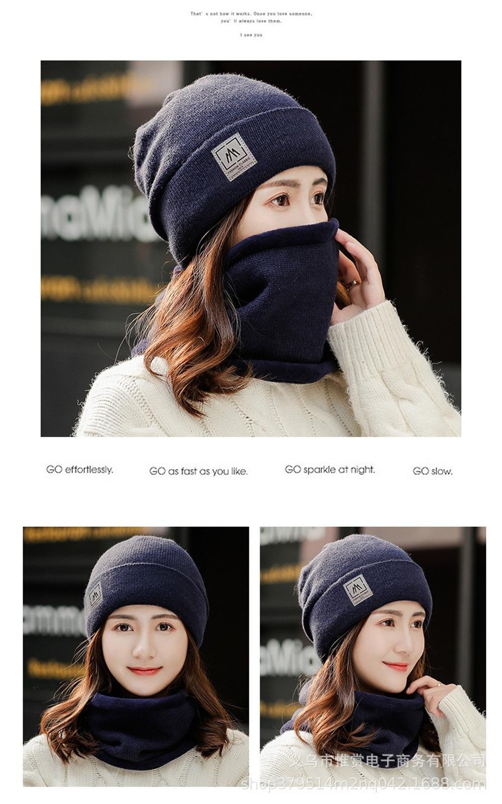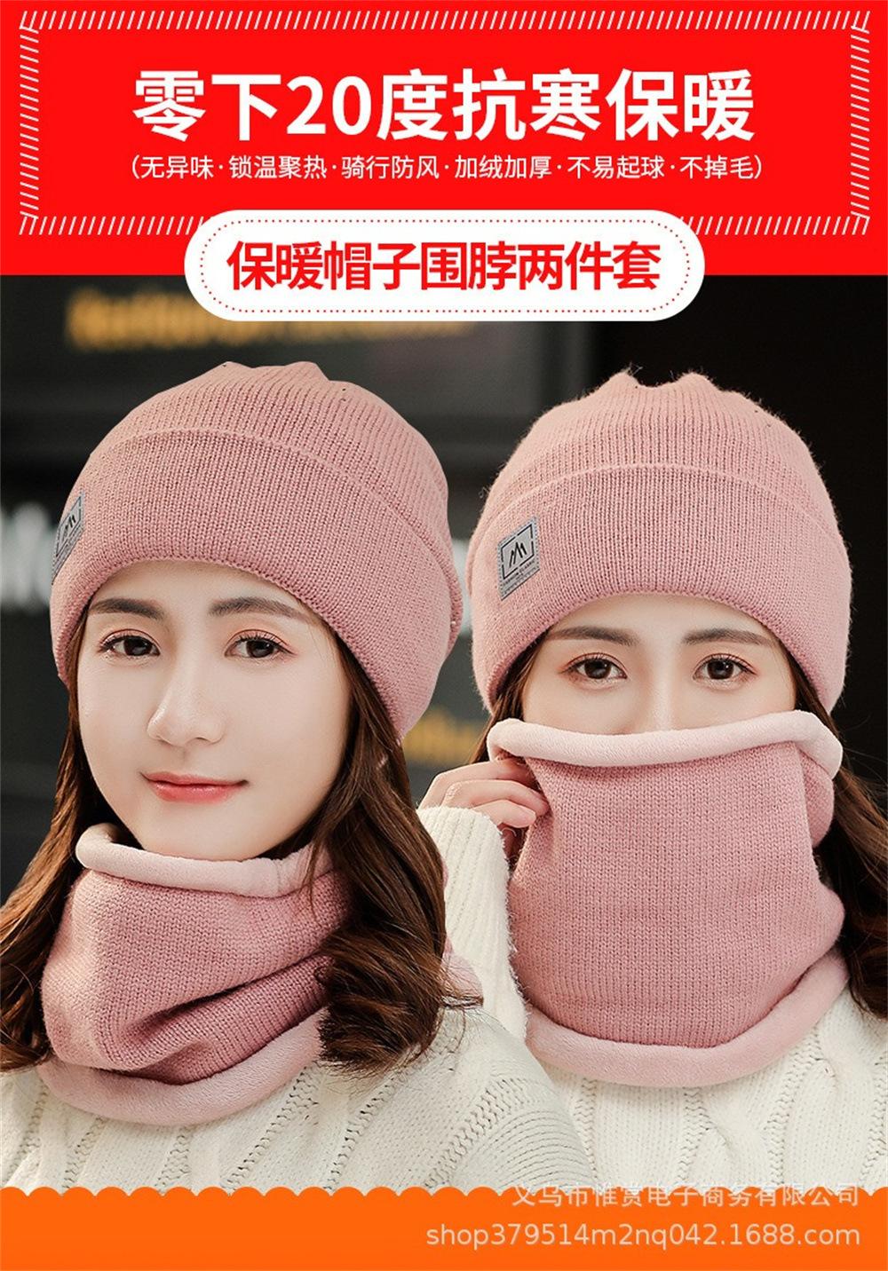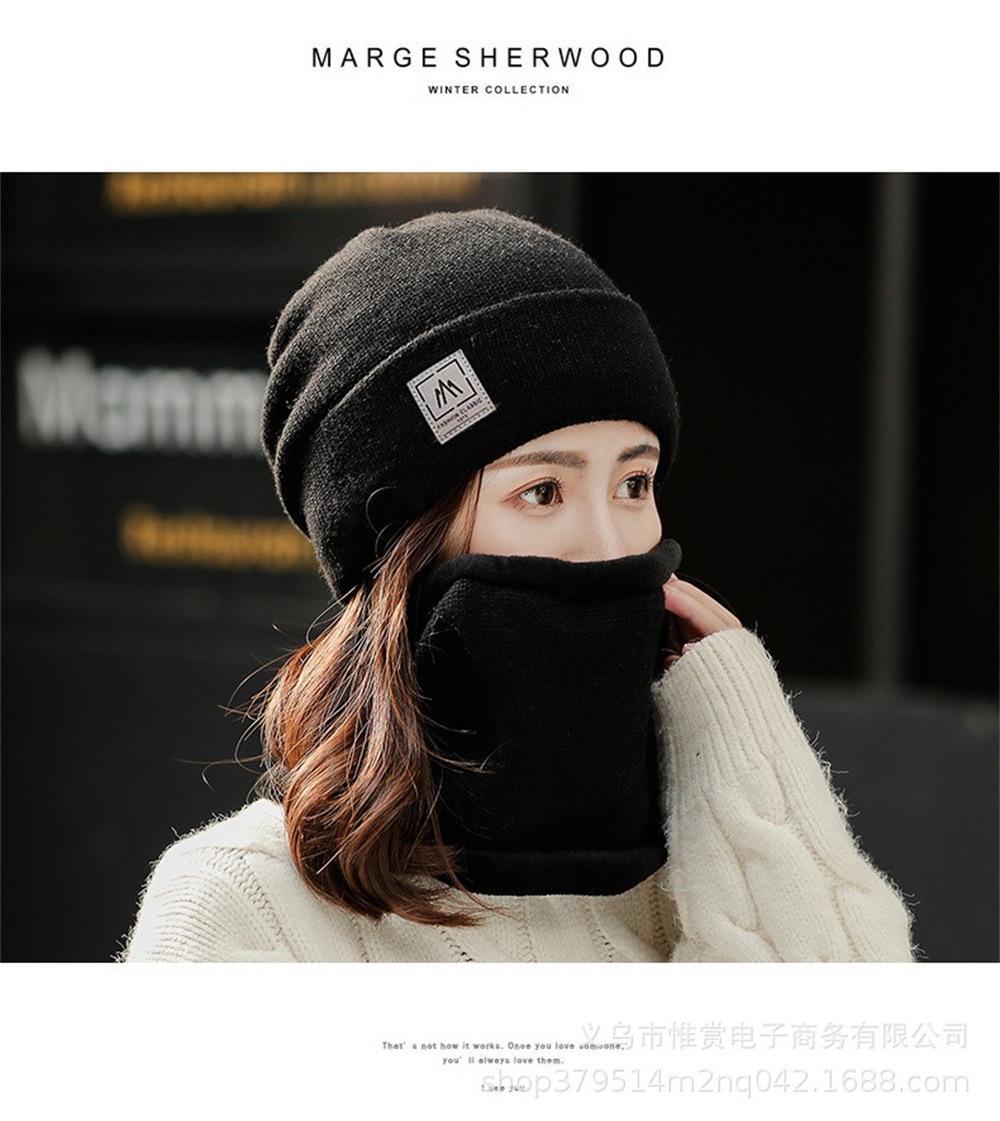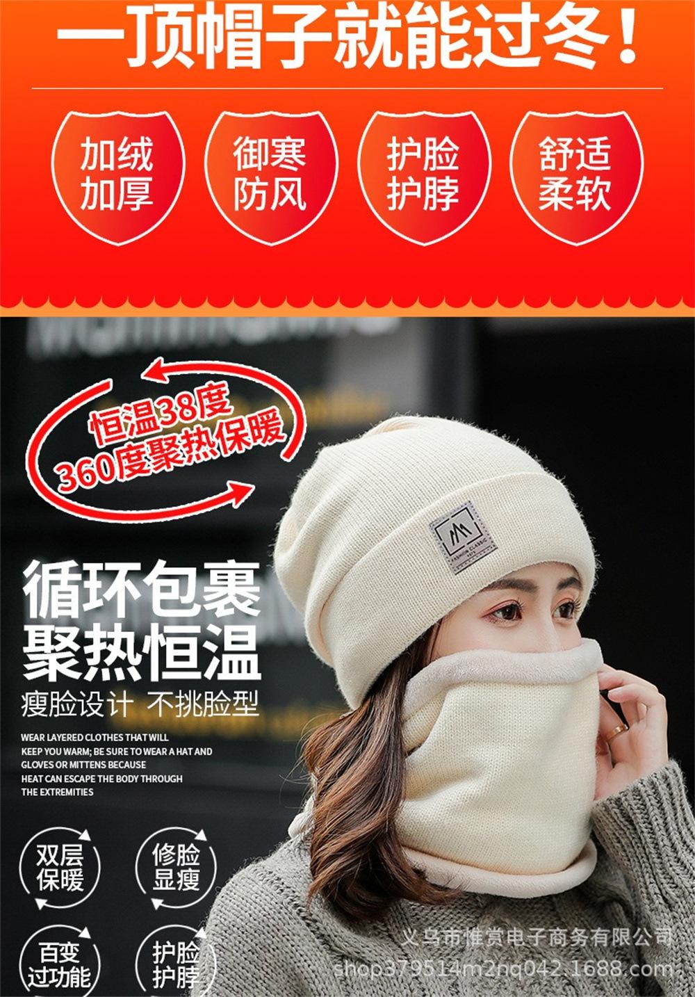 Invierno Nuevo Todo-combinable Sombrero Cálido Grueso Sombrero Tejido Esponjoso Dos Piezas Protección de Cuello Protección de Orejas Sombrero para Montar