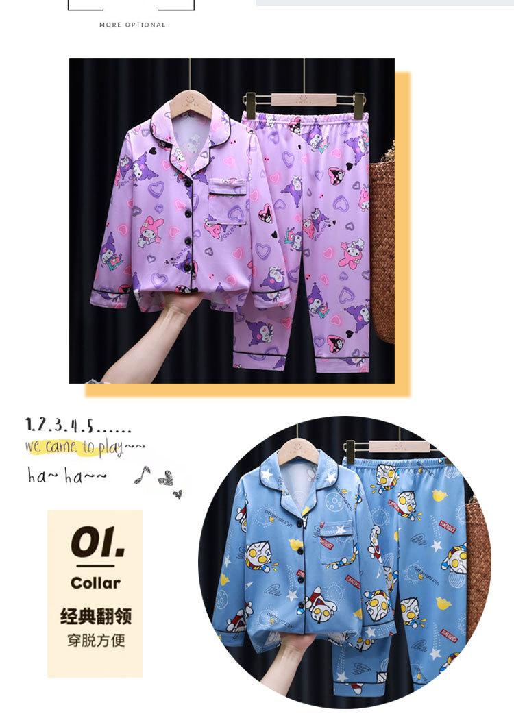 Pijamas para niños, primavera y otoño, para niñas, de manga larga, finos, con solapa, de dibujos animados, para el hogar