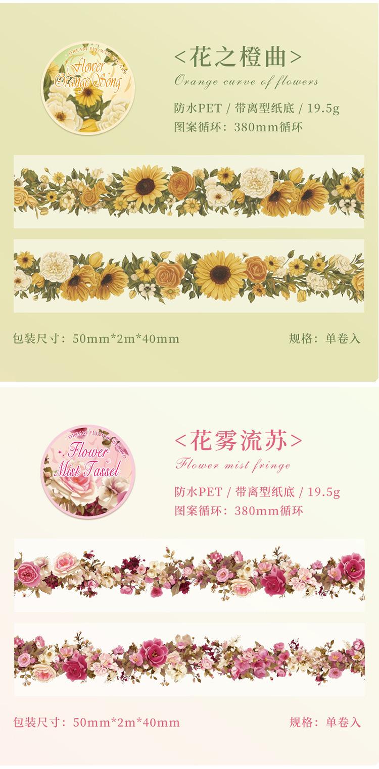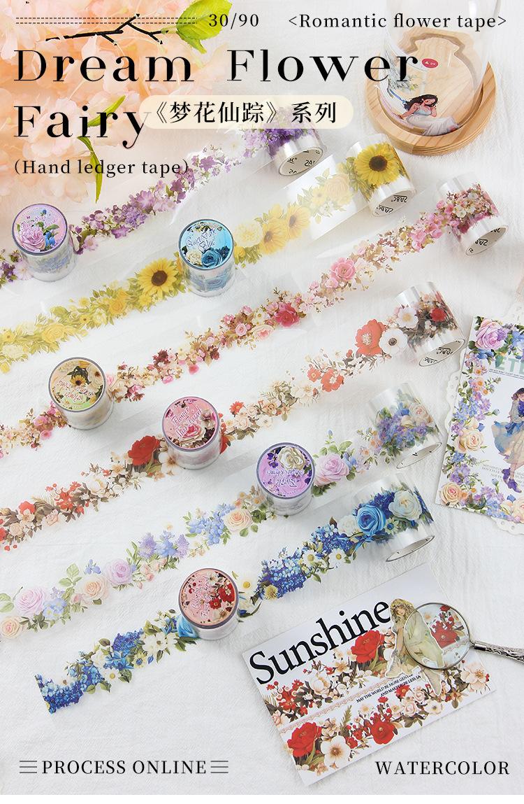 Cinta decorativa vintage con diseño de flores de ensueño del Mago de Oz, para manualidades, impermeable, para mascotas, con paisajes pequeños y frescos, para collage