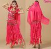 Conjunto de ocho piezas = top + cadena de cintura + falda + velo para la cabeza + un par de pulseras + collar + un par de pendientes
