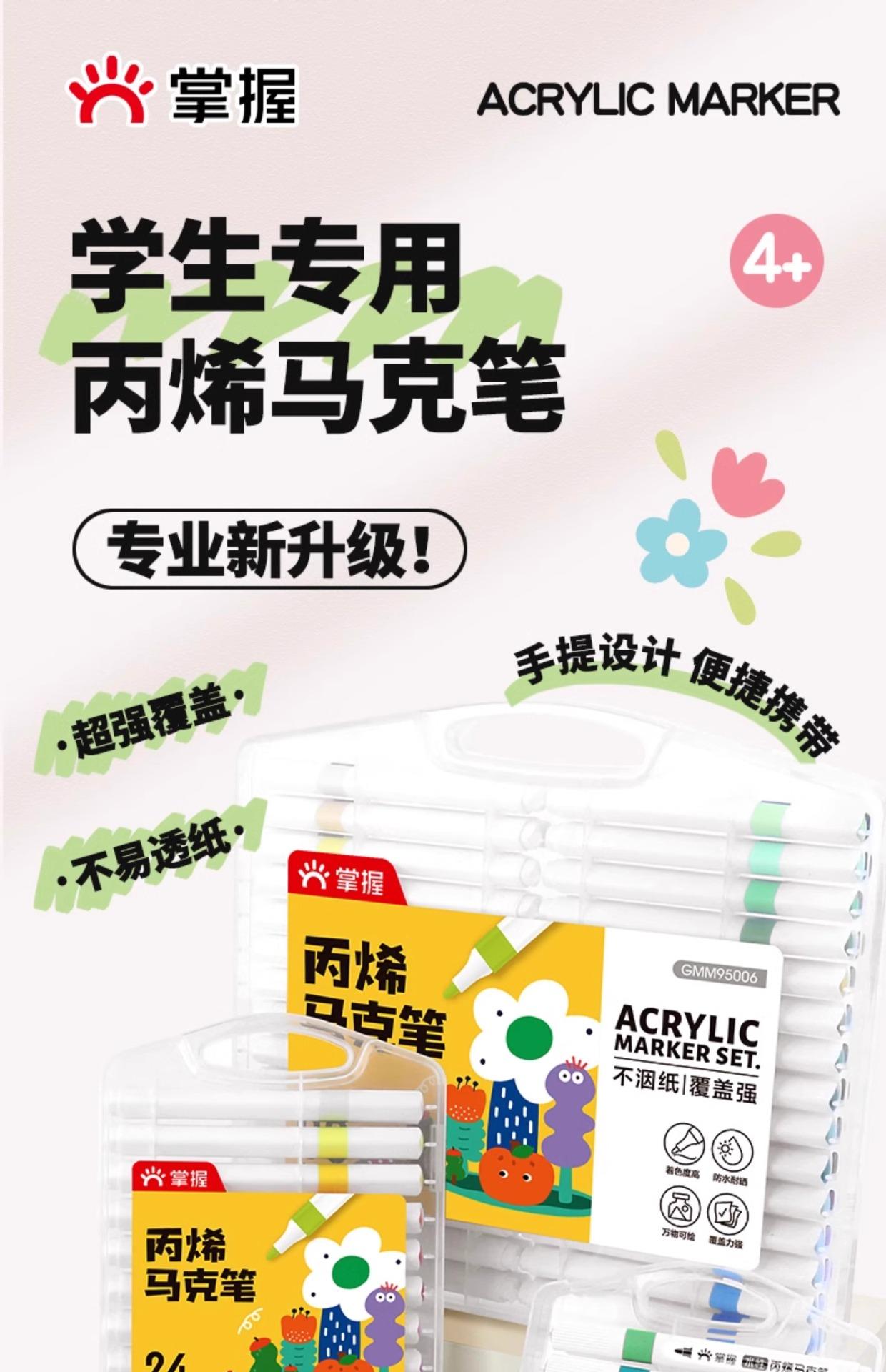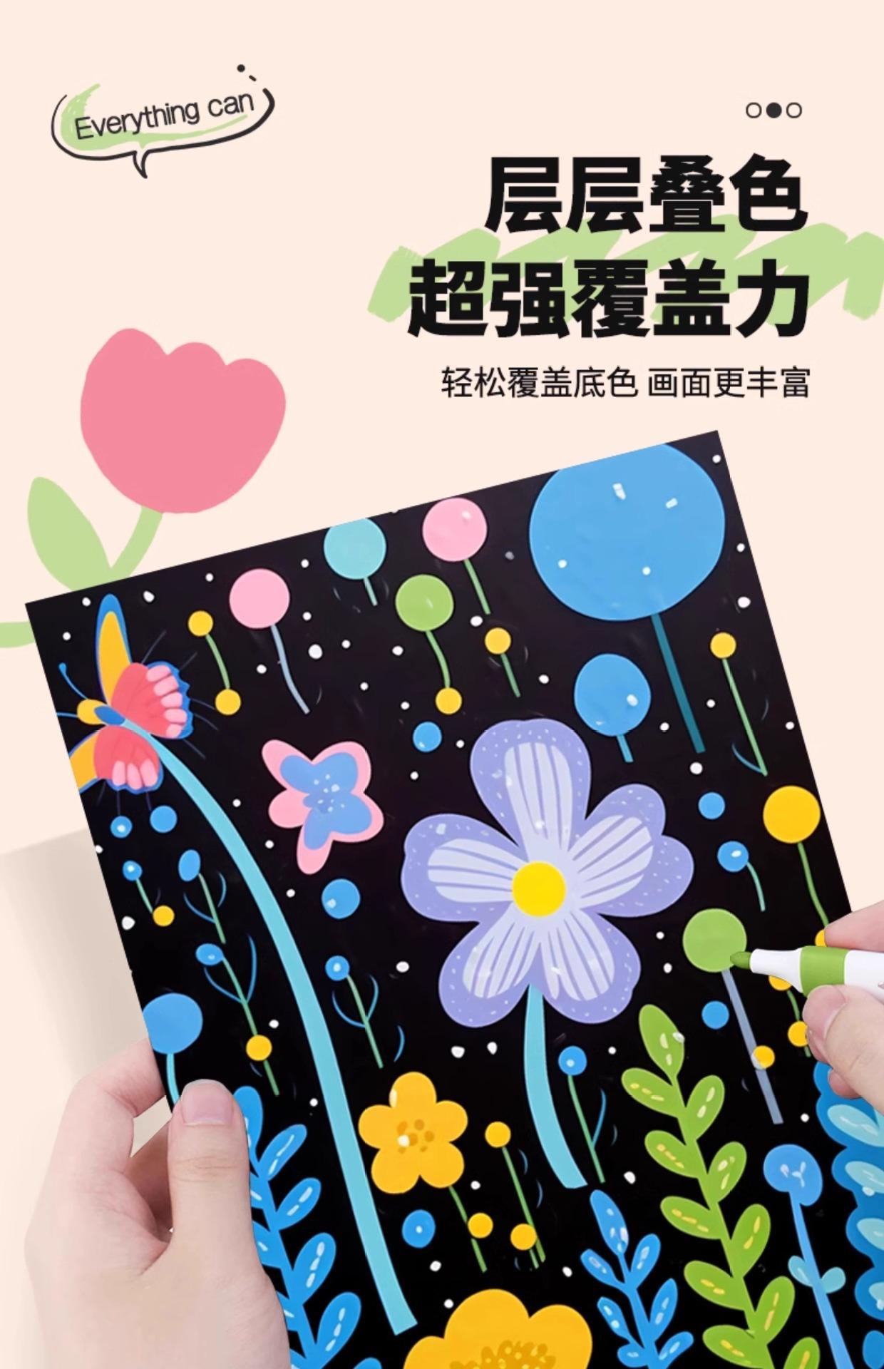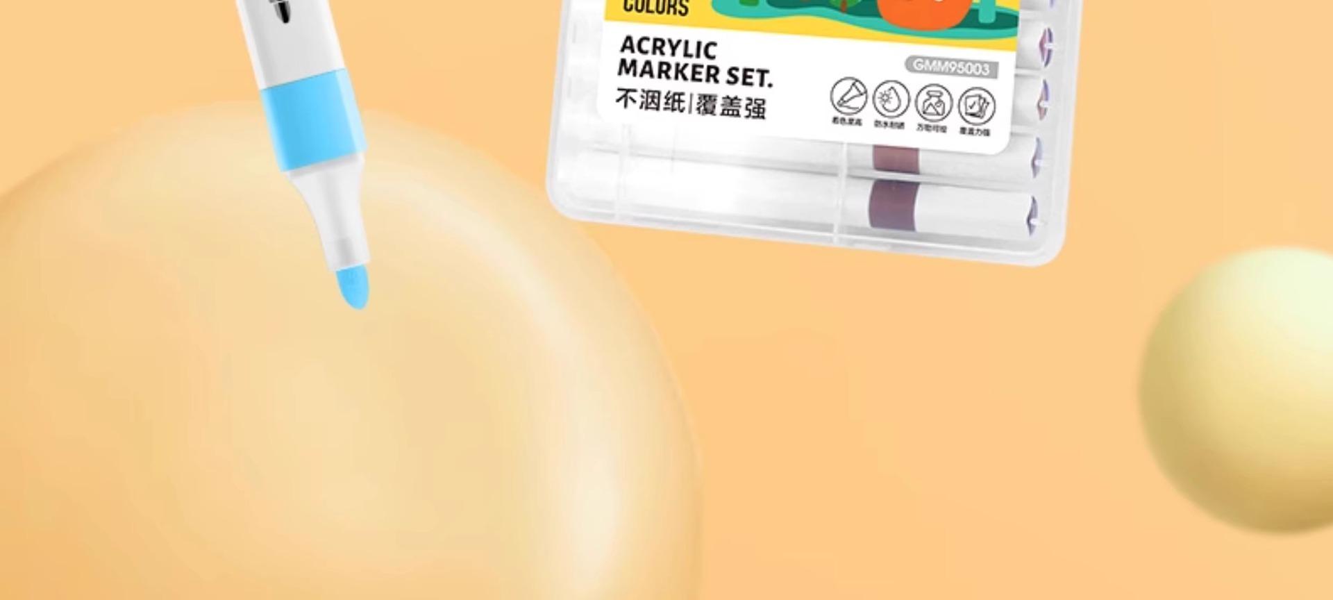 Domina el rotulador acrílico para estudiantes de primaria, arte, niños especiales, estudiantes de arte, jardín de infantes, color opaco, pincel de color apilable