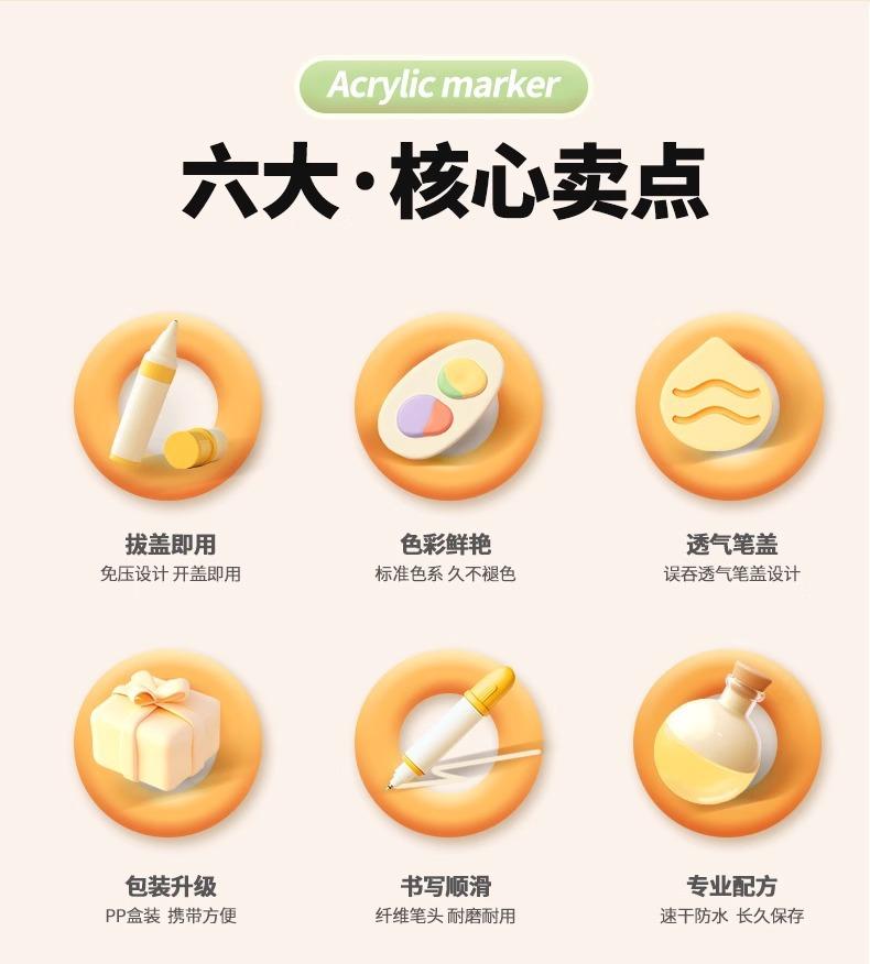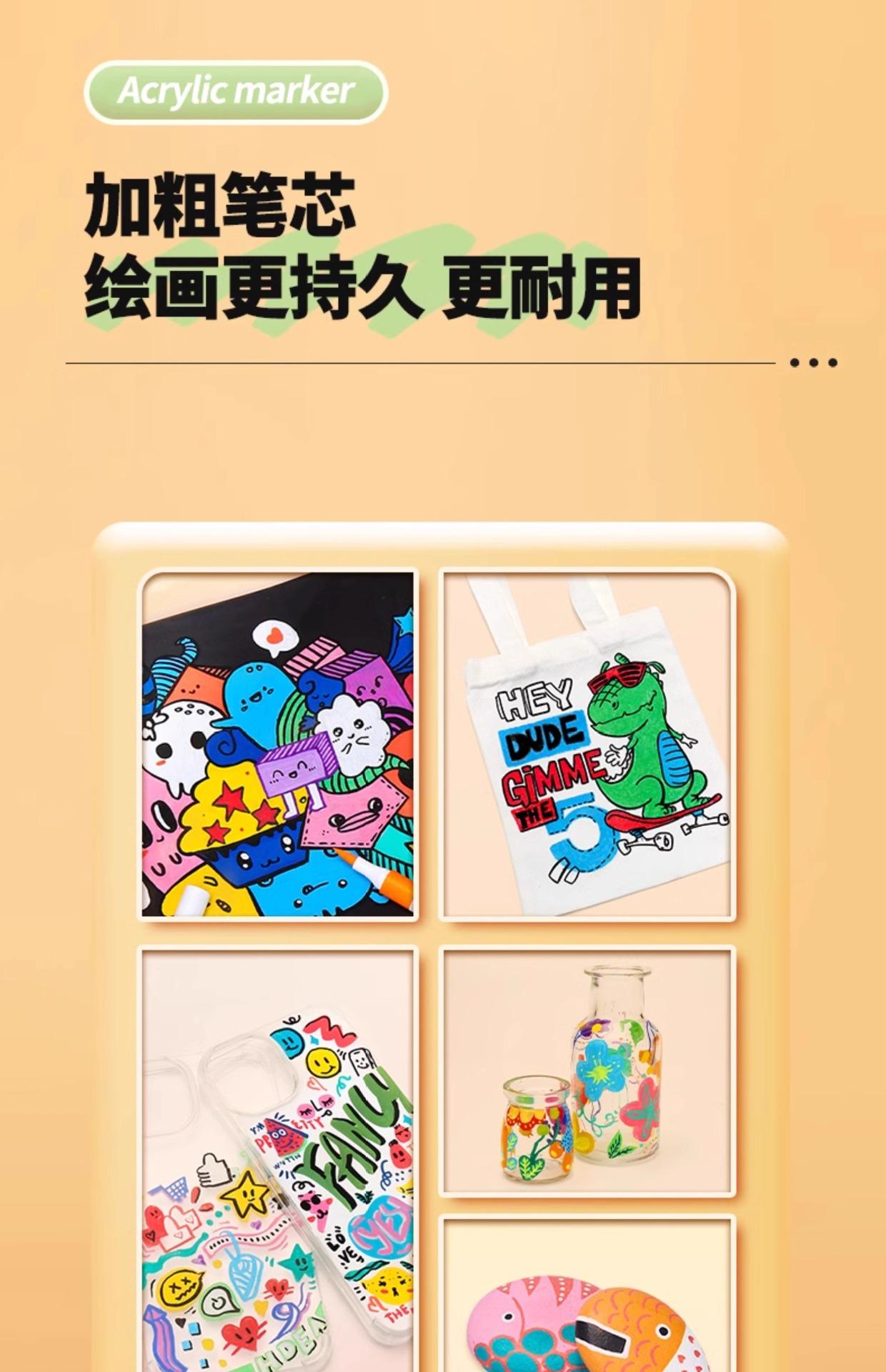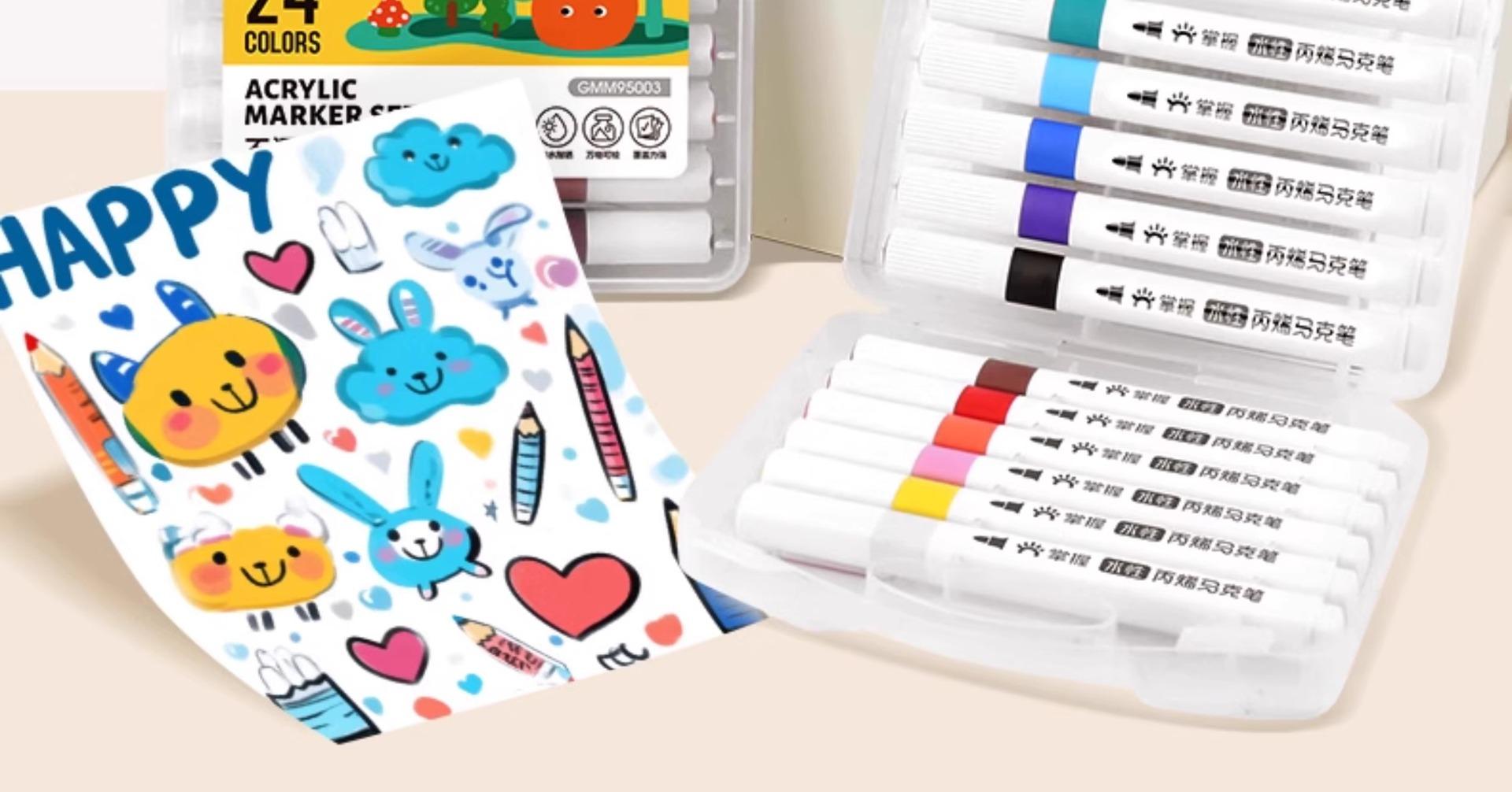 Domina el rotulador acrílico para estudiantes de primaria, arte, niños especiales, estudiantes de arte, jardín de infantes, color opaco, pincel de color apilable