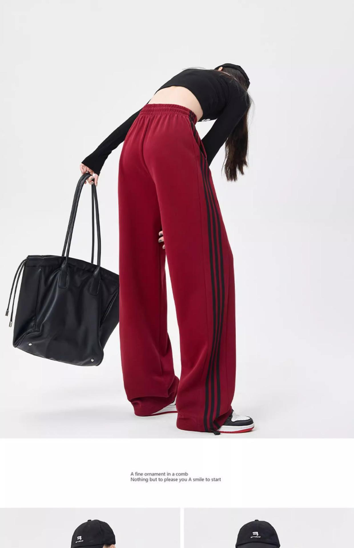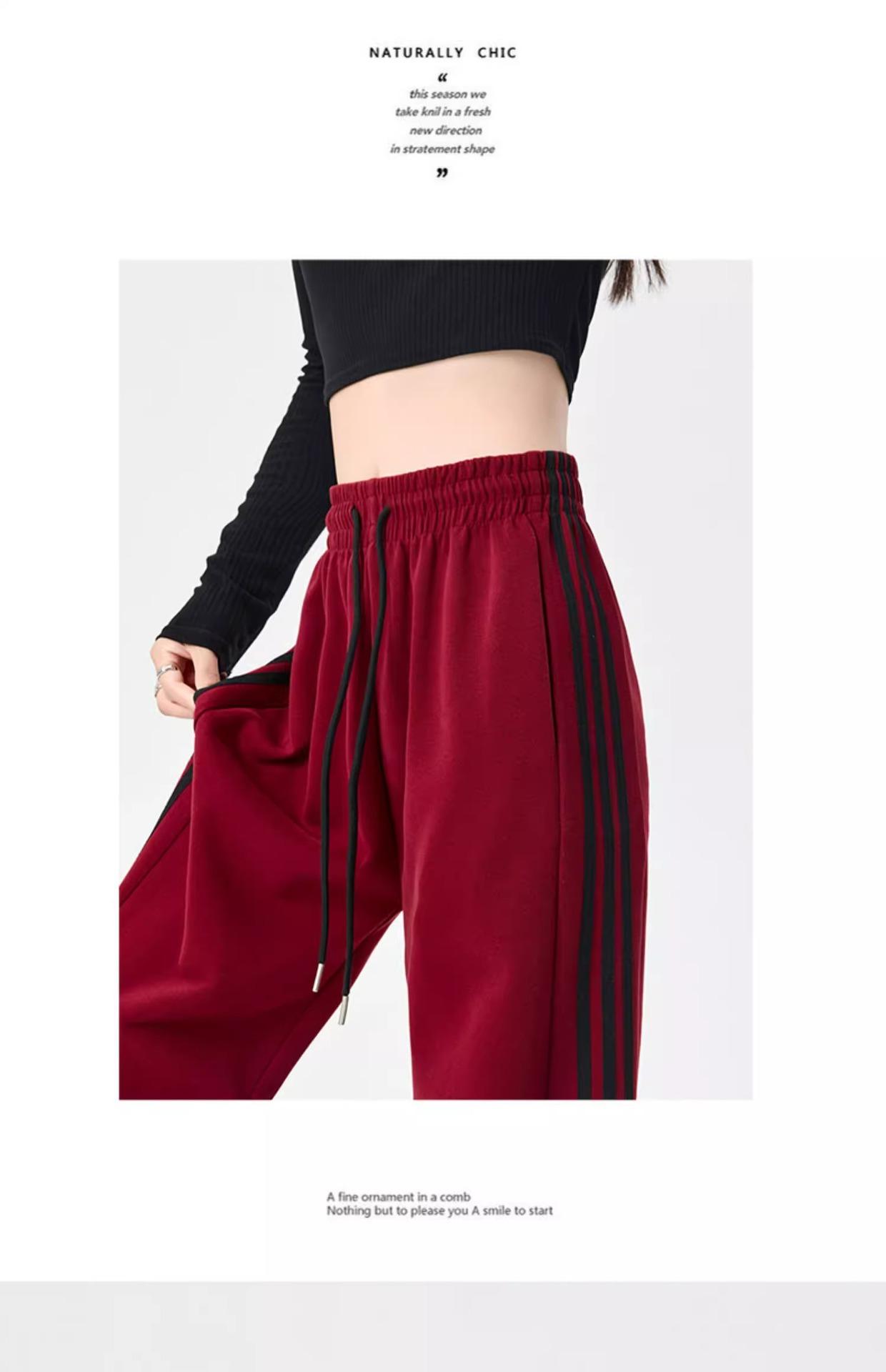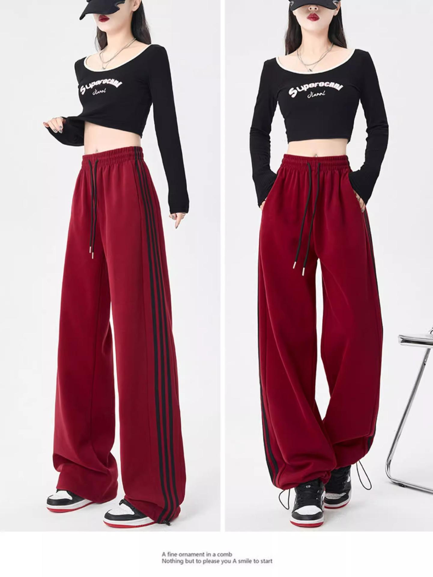Pantalones Deportivos de Pierna Ancha Pequeños de Nuevo Estilo 2024 Estilo Perezoso Retro Rojo Angkor Cubre 145 Pantalones Deportivos Casuales