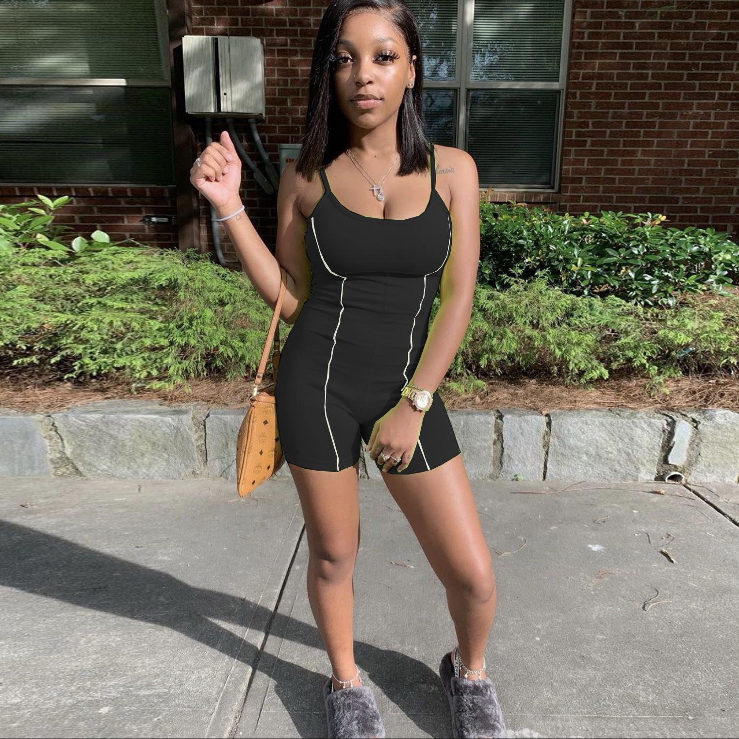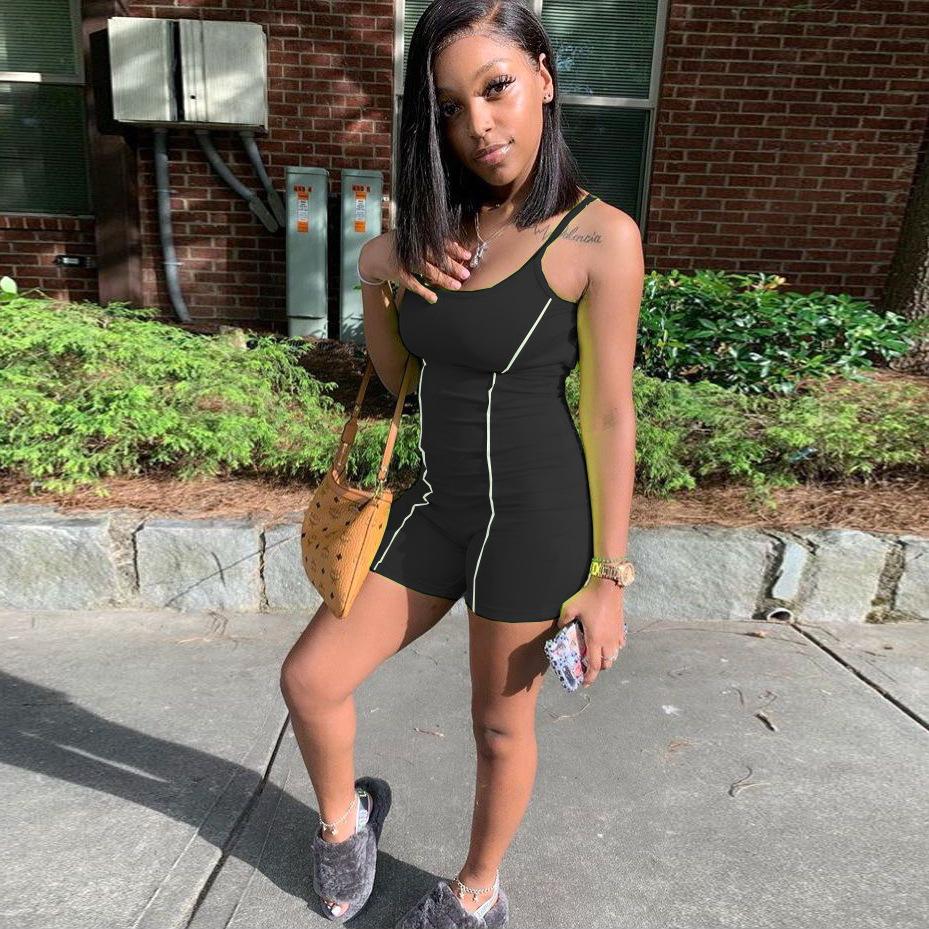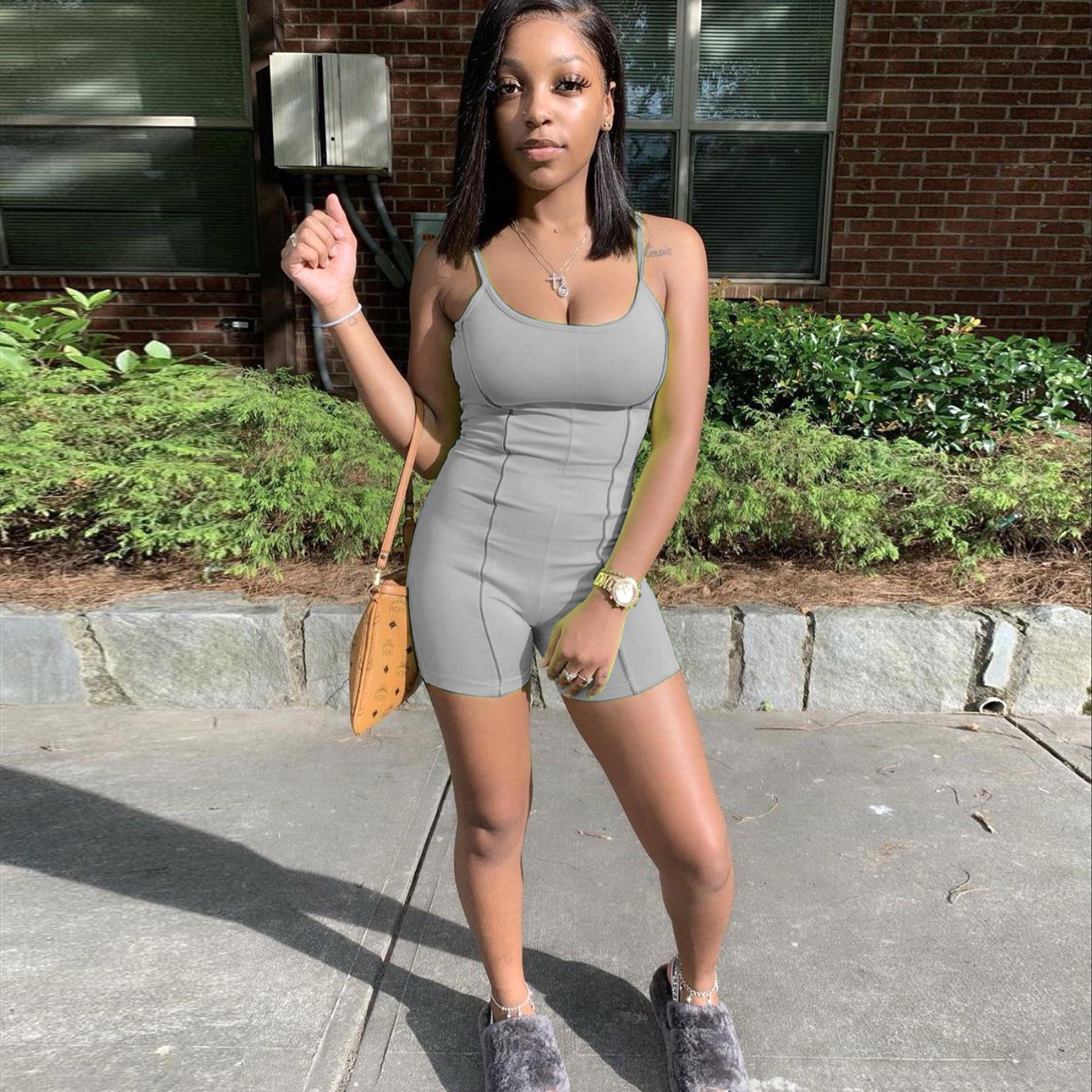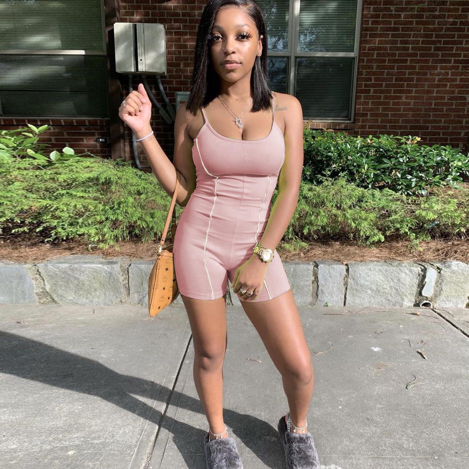 Mono corto con tirantes ajustados de color sólido sexy a la moda europea y americana de verano 2020 para mujer