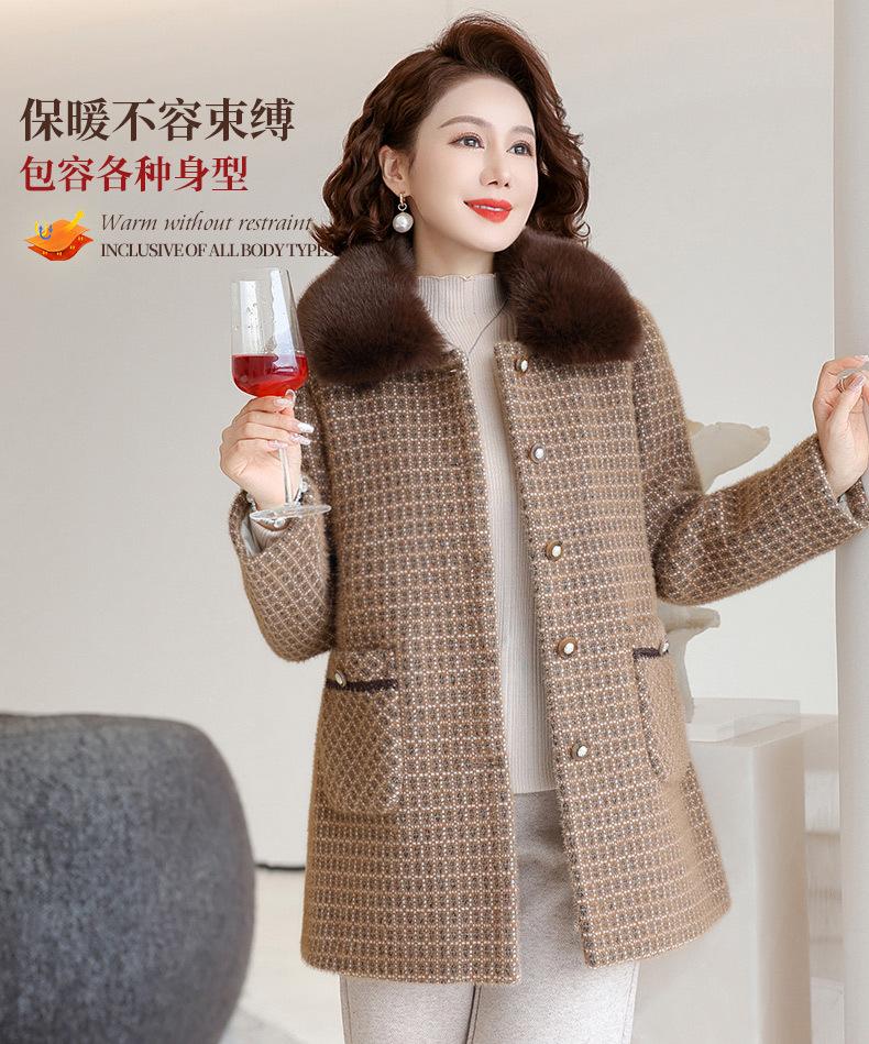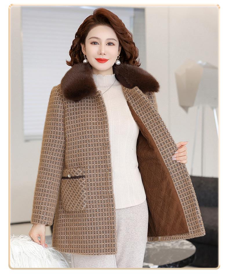Abrigo de Invierno de Visón de Terciopelo para Madre Nuevo Abrigo de Tweed Esponjoso de Invierno para Mujeres de Mediana Edad y Ancianas Abrigo Acolchado de Algodón Grueso de Largo Medio