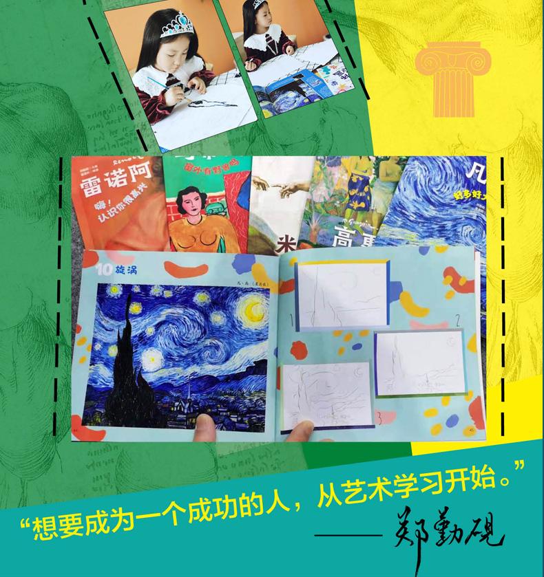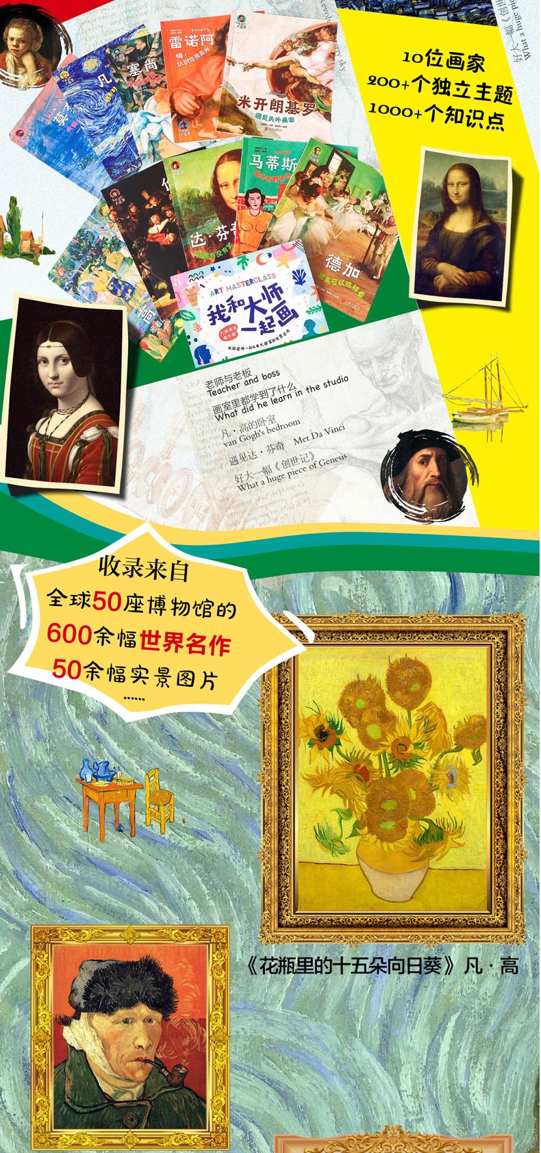 El curso general de educación estética para niños cuenta con 10 volúmenes, del gran pintor Monet van Gogh da Vinci Mona.