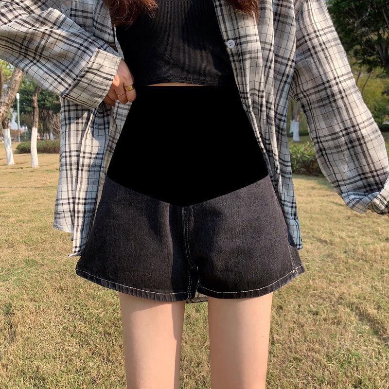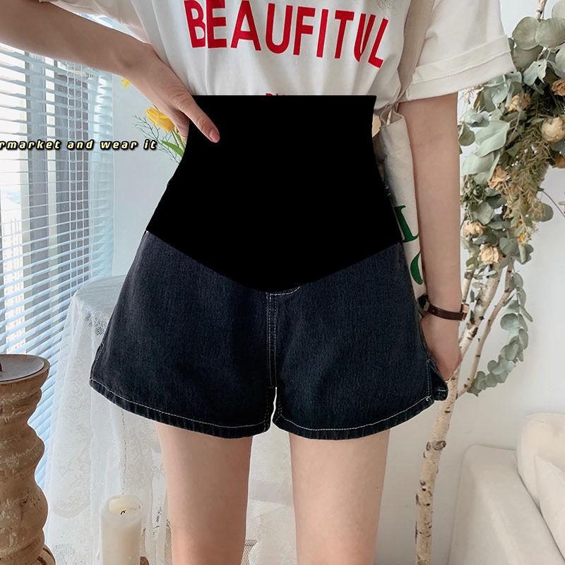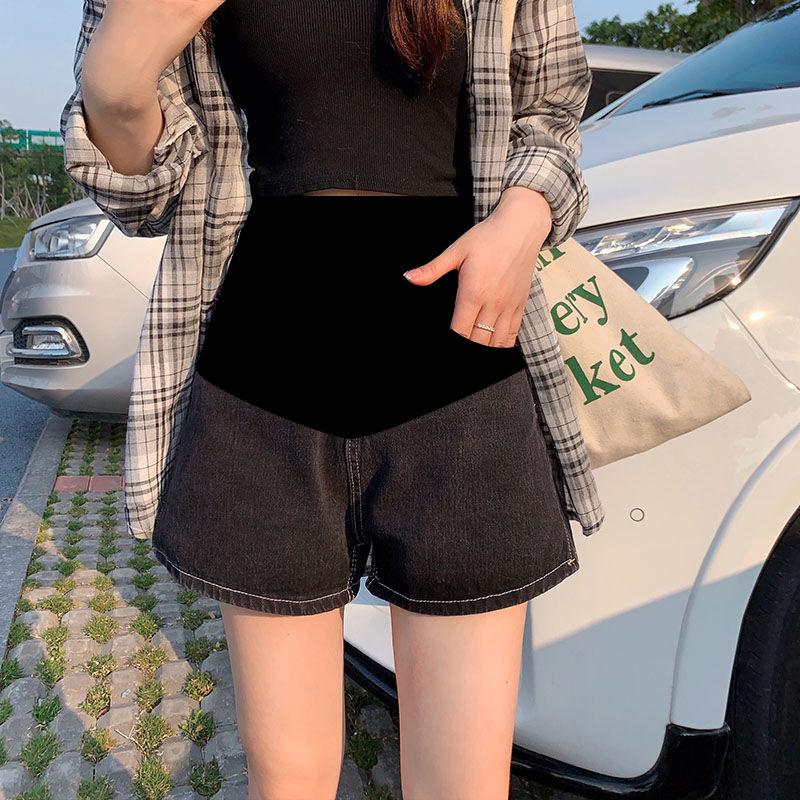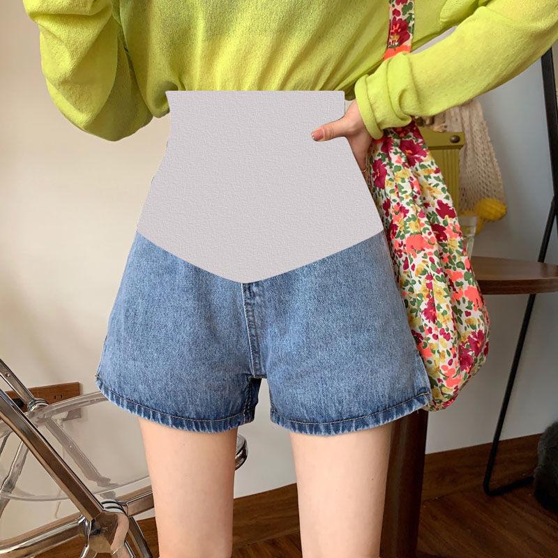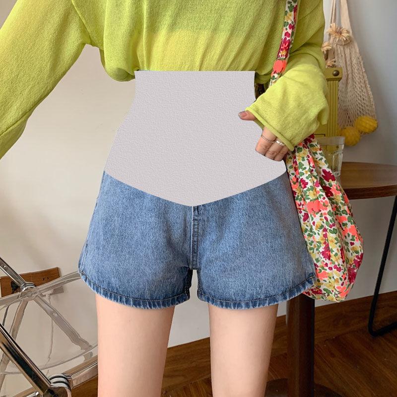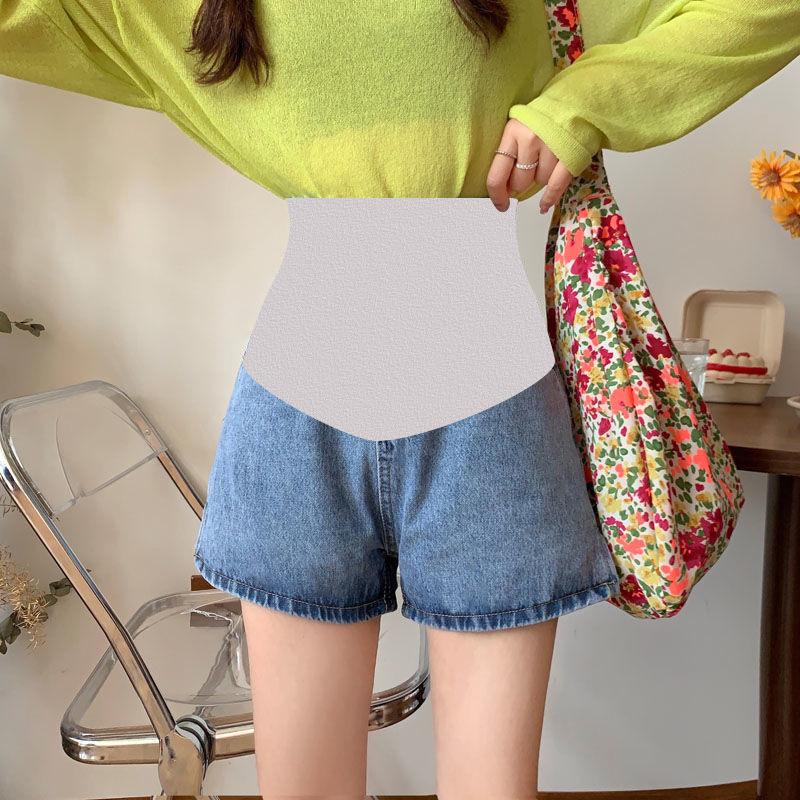 Pantalones cortos de mezclilla de pierna ancha para embarazadas, pantalones cortos de tres puntos con soporte abdominal, talla grande, novedad de verano de 2024