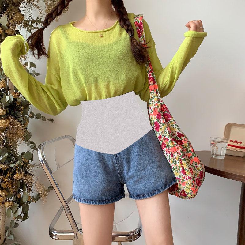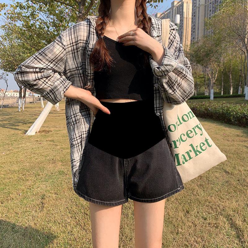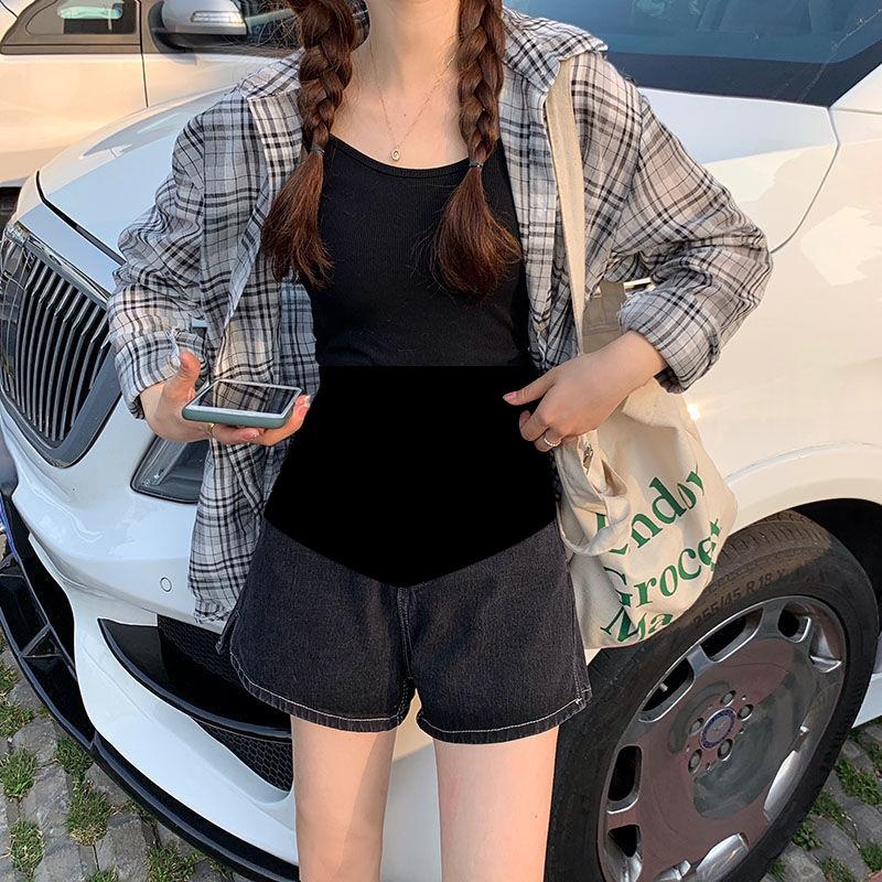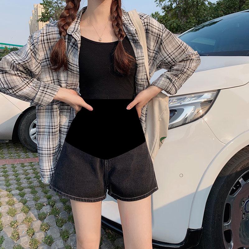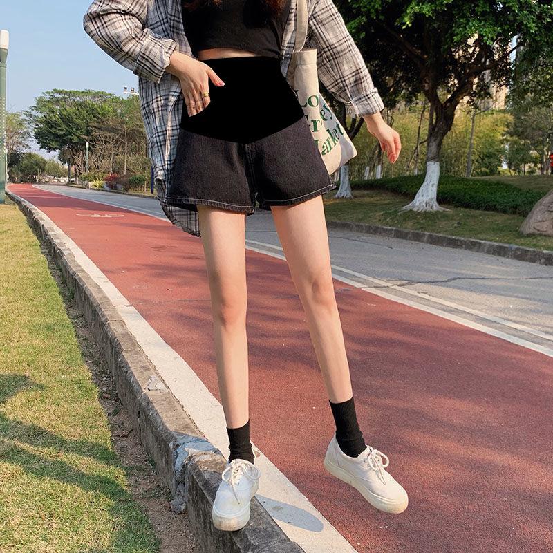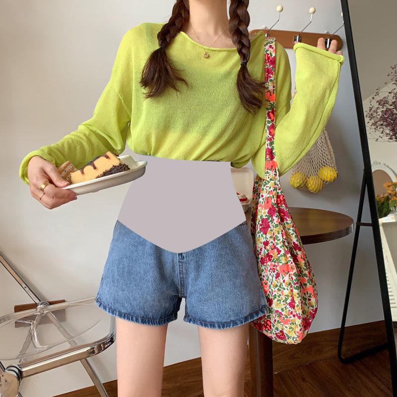 Pantalones cortos de mezclilla de pierna ancha para embarazadas, pantalones cortos de tres puntos con soporte abdominal, talla grande, novedad de verano de 2024