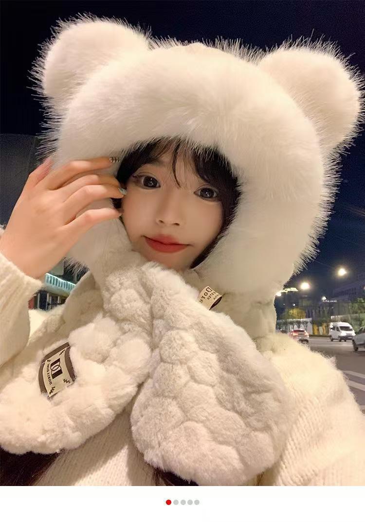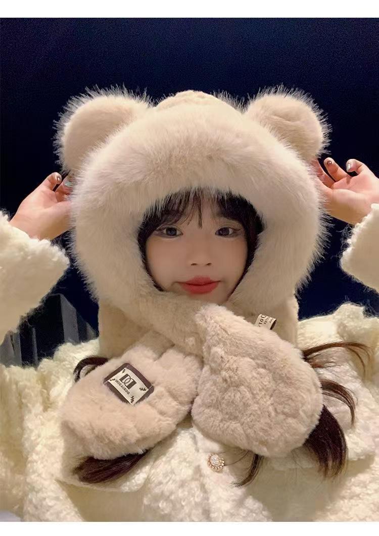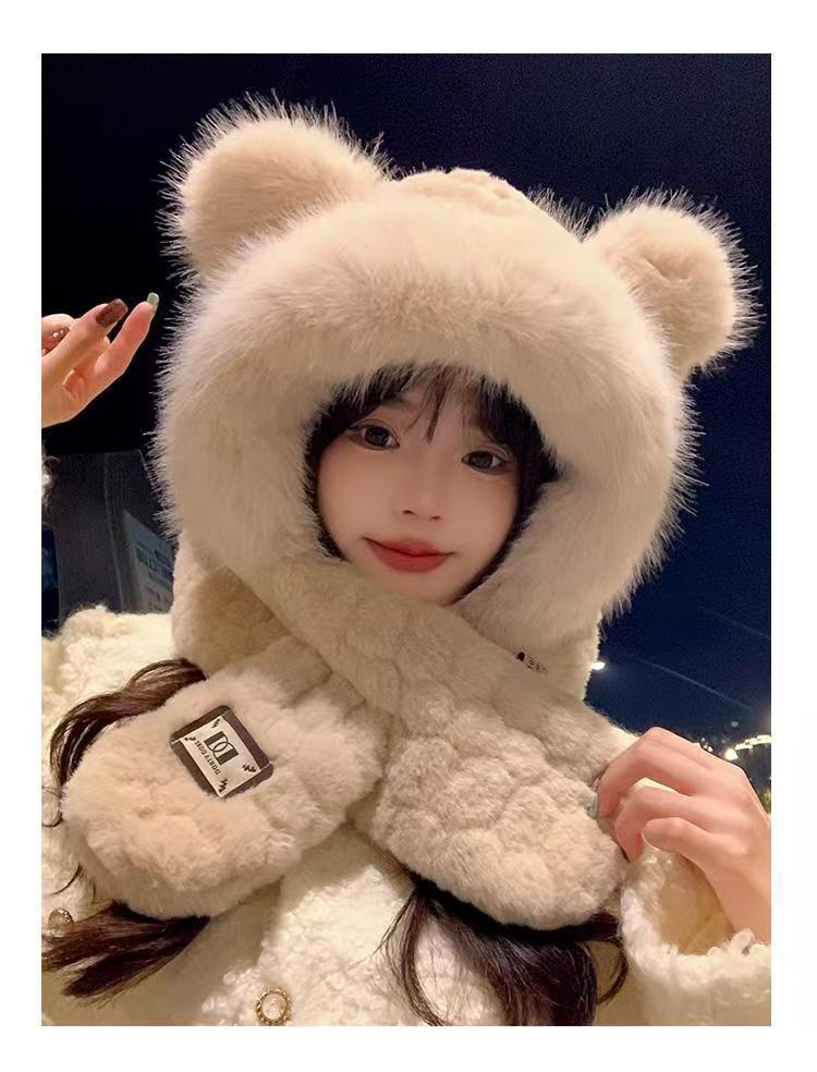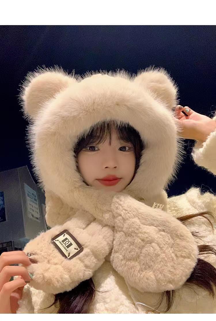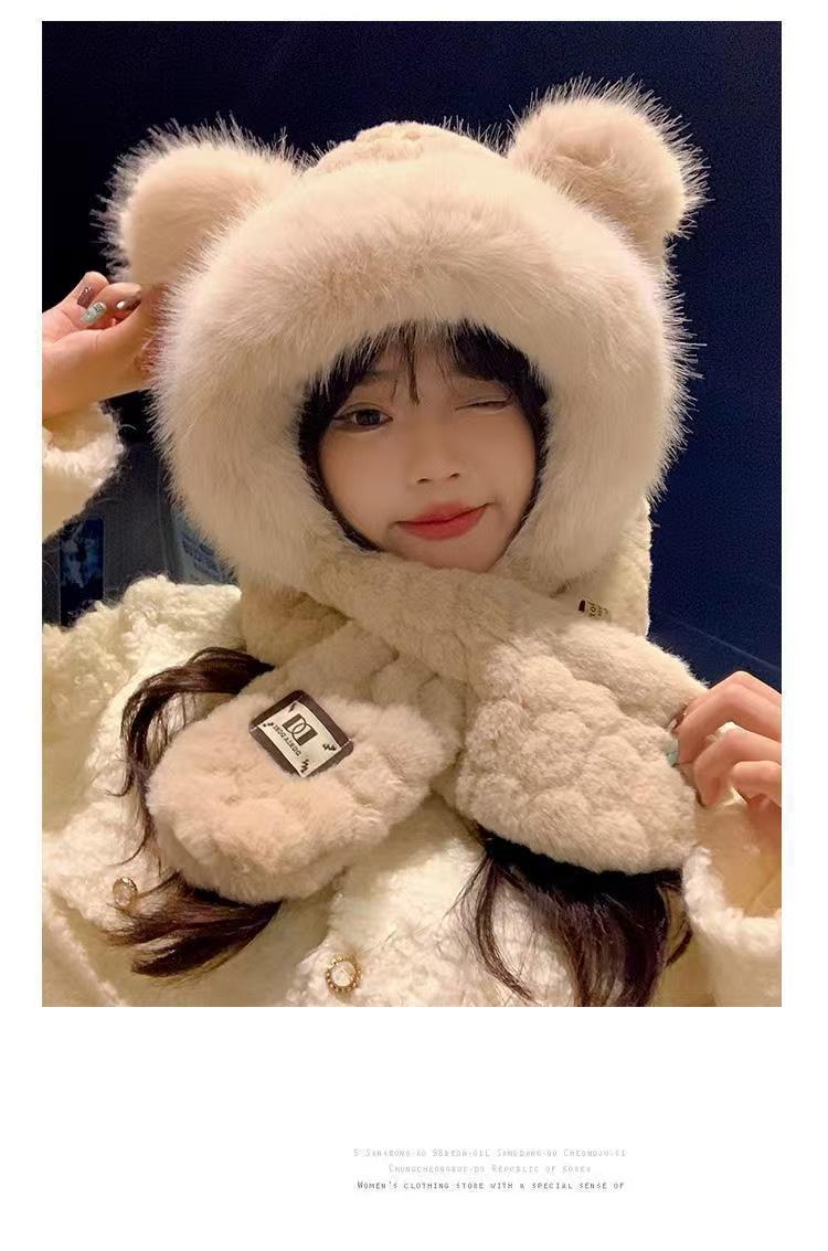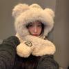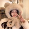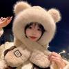 Sombrero de Peluche de Oso Bufanda Todo en Uno para Mujer Invierno Estilo K Que Muestra el Rostro Sombrero de Peluche Pequeño Ciclismo A Prueba de Frío y Cálido Sombrero con Protección para las Orejas