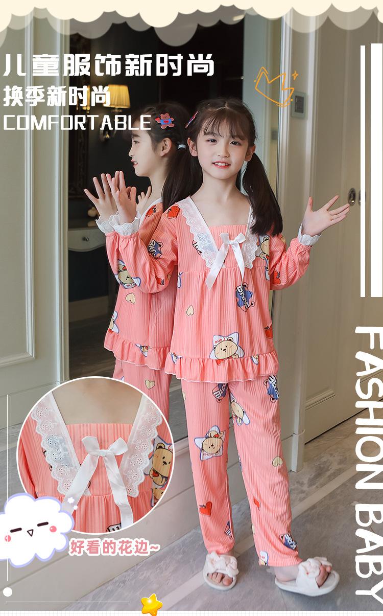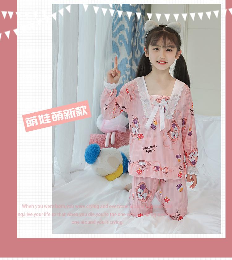 Pijamas para niñas, primavera y otoño, manga larga, traje fino, dibujos animados, lindo, súper lindo, aire acondicionado, ropa de casa