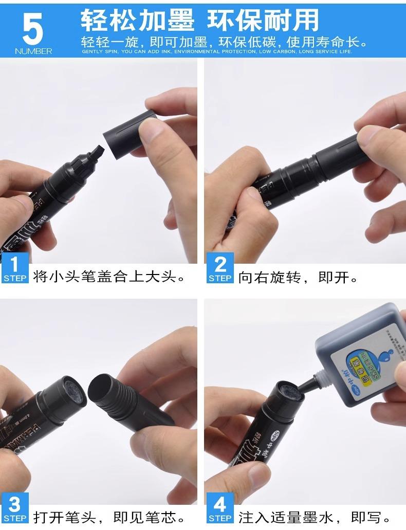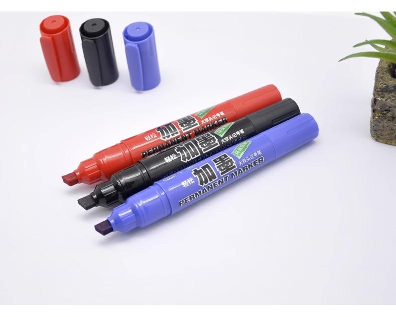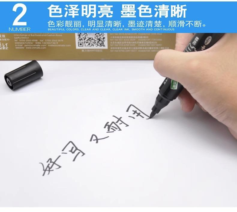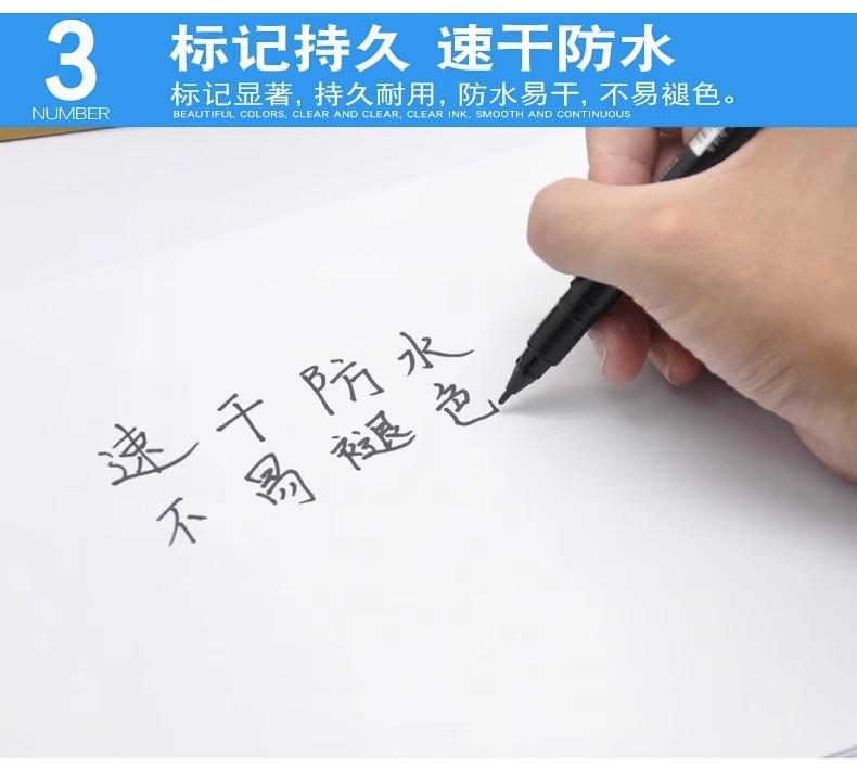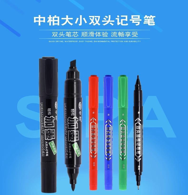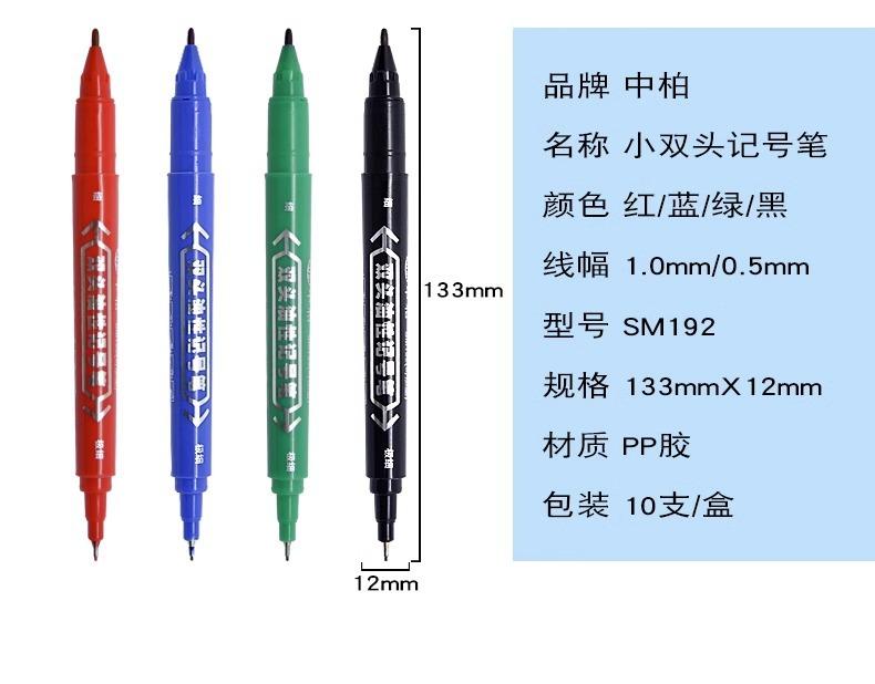 Rotulador grande de doble punta aceitoso Zhongbai SM392, marcador de póster grueso y fino, negro, paquete de 10