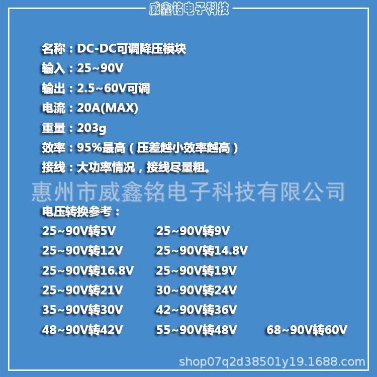 Módulo reductor ajustable de alta potencia CC 72V a 60V48V36V24V12V convertidor de voltaje de batería 20A