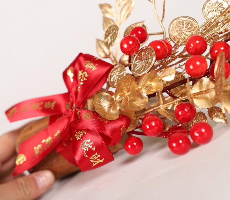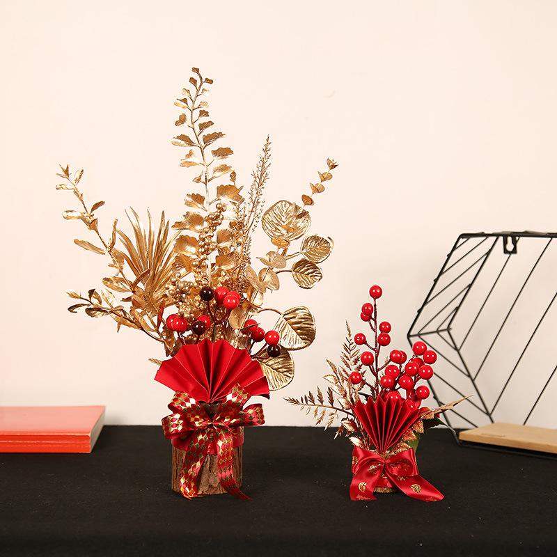 Decoración del Festival de Primavera Apertura de Año Nuevo Acebo Fruto Rojo Yucalipto Se Muda a Nuevo Hogar Adornos de Escritorio Árboles Pequeños para el Día de Año Nuevo