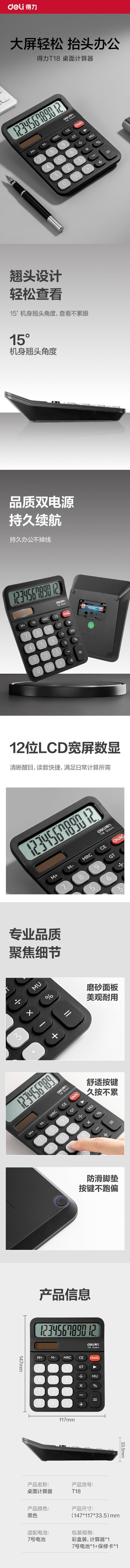 Calculadora de Escritorio Deli T18 Doble Fuente de Alimentación Pantalla Grande Oficina Financiera Computadora Electrónica Papelería de Oficina