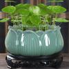 Maceta de cerámica con forma de loto, estilo retro hidropónico, de cobre, con forma de hierba de dinero, de una sola hoja, para cultivo de agua, no porosa, con forma de hierba de dinero, maceta verde.