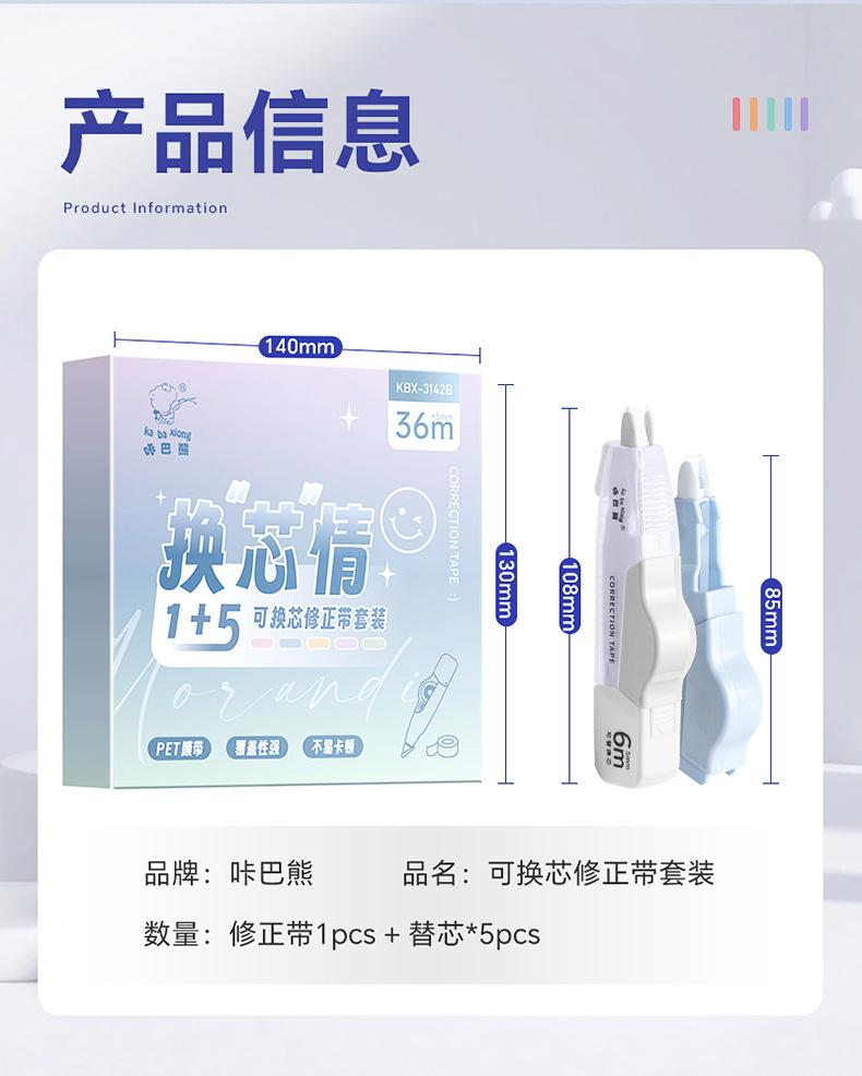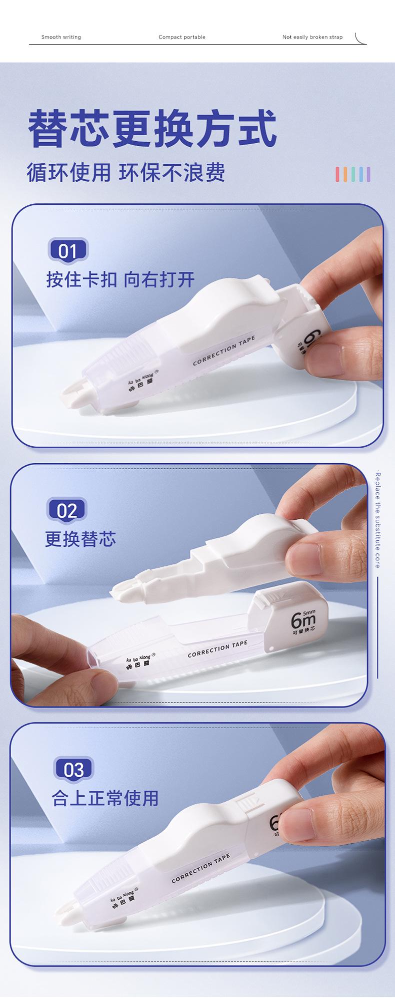 Cinta Correctora Ka Ba Xiong Estudiantes Usan Pluma Tipo Pluma Alterable Recargable para Corregir y Modificar Papelería de Secundaria