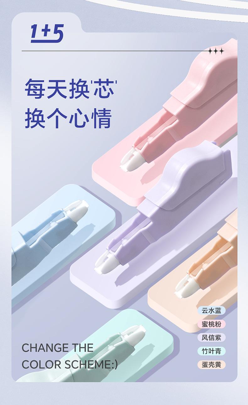 Reusable core correction tape-color transparent retro color 1 box, Reusable core correction tape-solid color Morandi 1 box