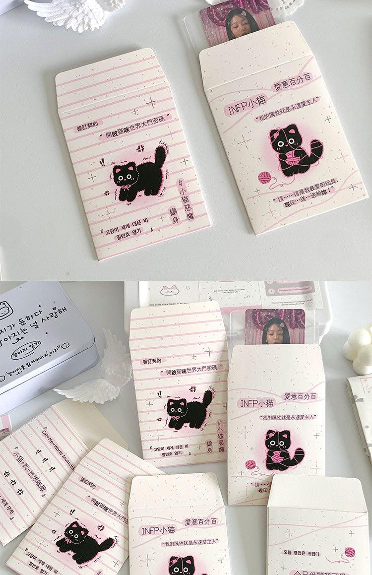 Estuche para tarjetas pequeño con diseño de gato adorable, bolsa tipo sobre, material de embalaje para tarjetas, estuche para tarjetas, papel kraft de alto valor de color, sobre pequeño