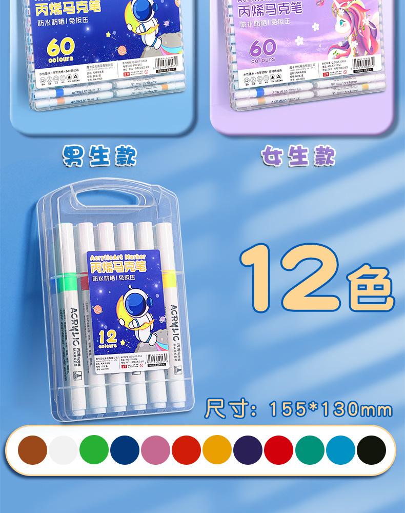 Plumón acrílico para estudiantes de primaria color opaco apilable pluma de acuarela para niños pluma acrílica lavable pluma de color pluma de color