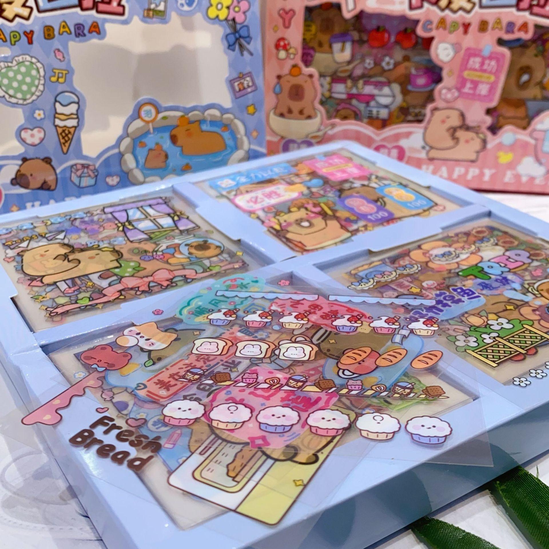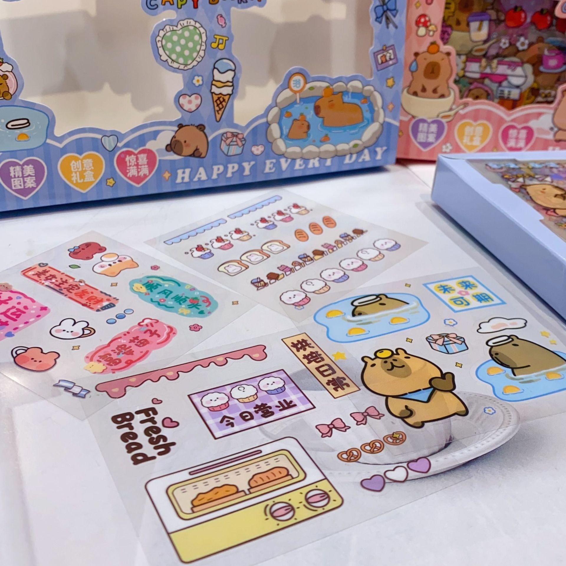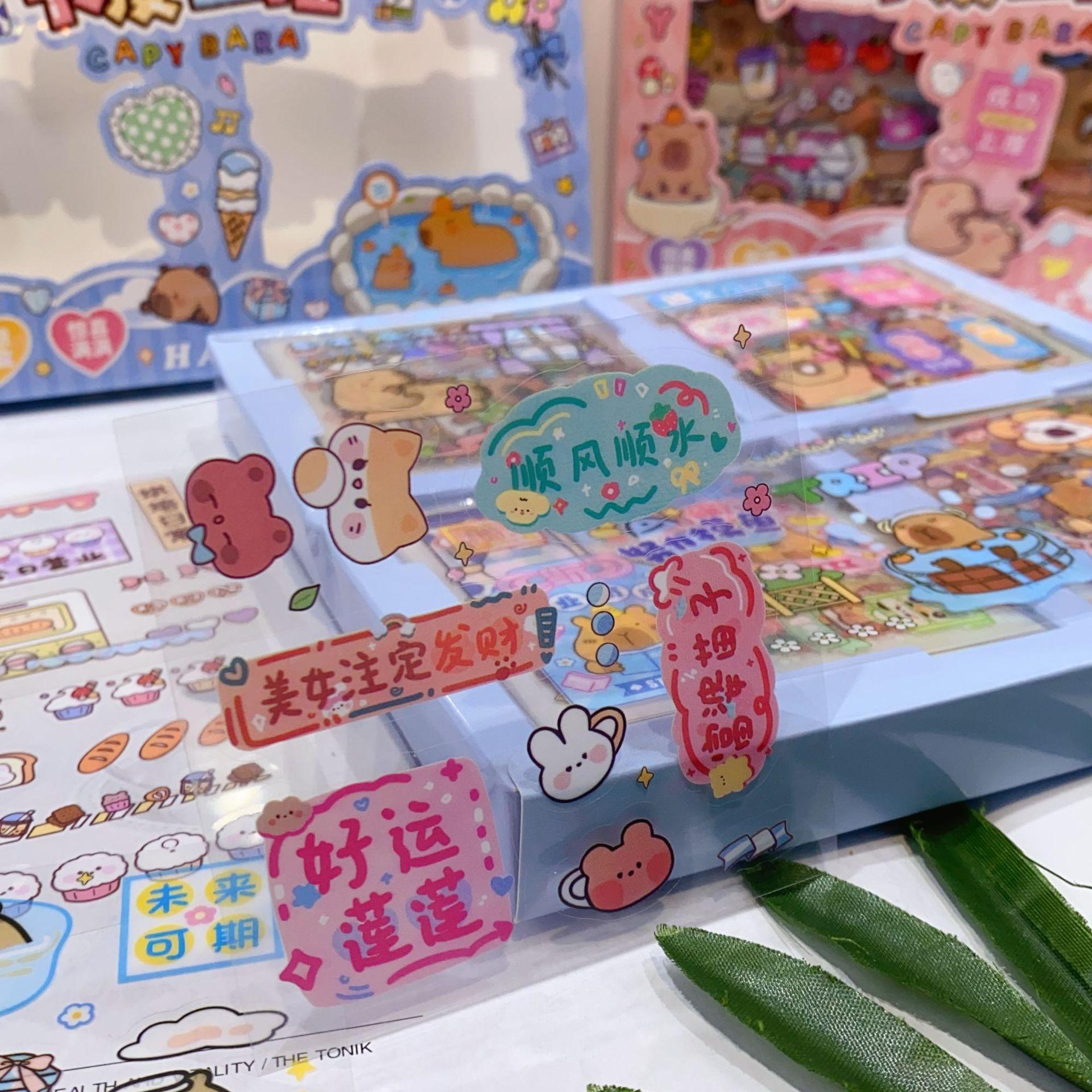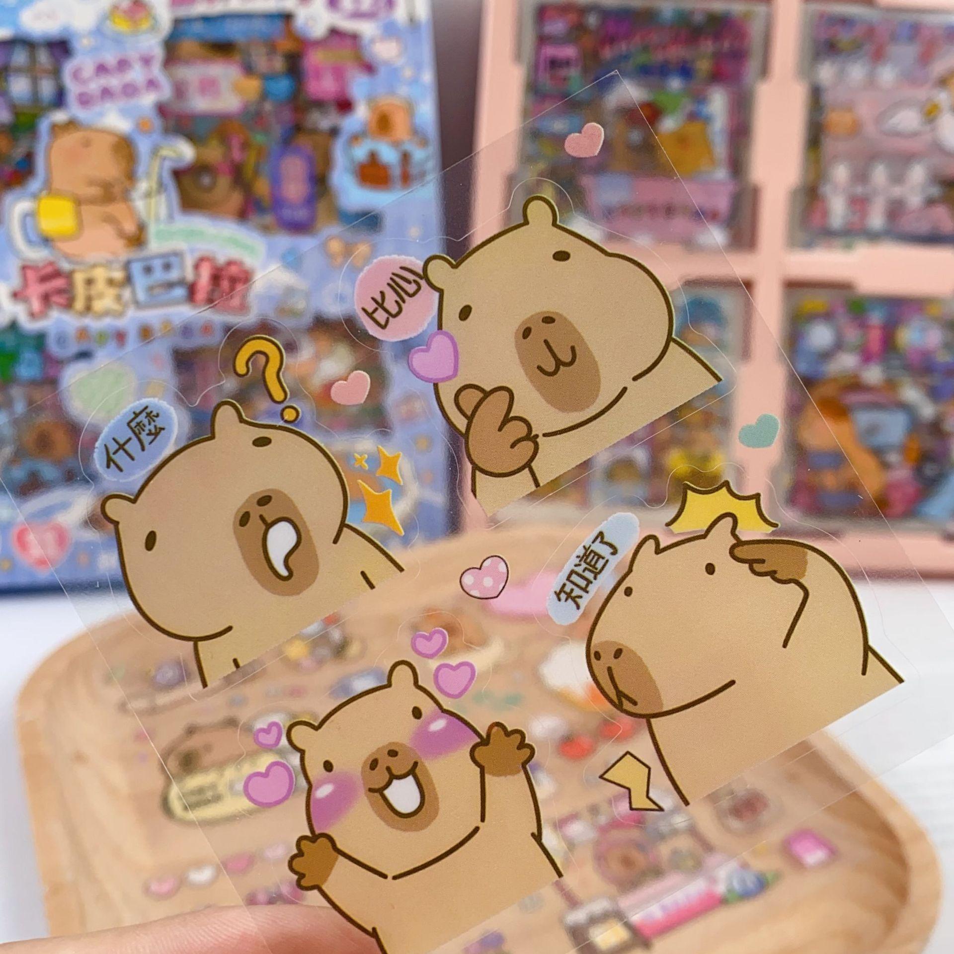 Nueva pegatina del manual de Kapi Bara, bonita pegatina de dibujos animados de alto valor de color, pegatina de tarjeta Goo, pegatina transparente de PET para bricolaje, traje