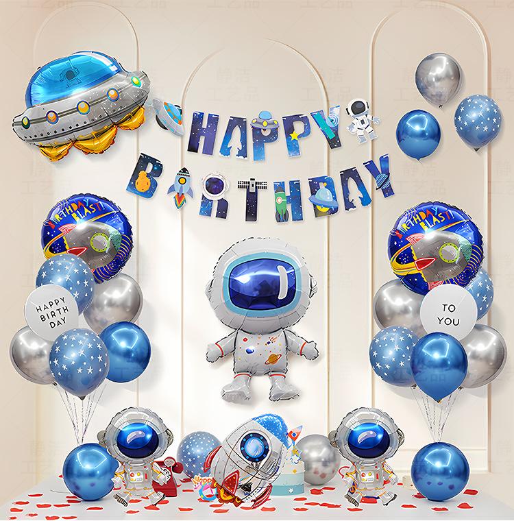 Escena de decoración de cumpleaños infantil transfronteriza con diseño de globo de película de aluminio, fondo con tema de dibujos animados para fiesta de niños y niñas
