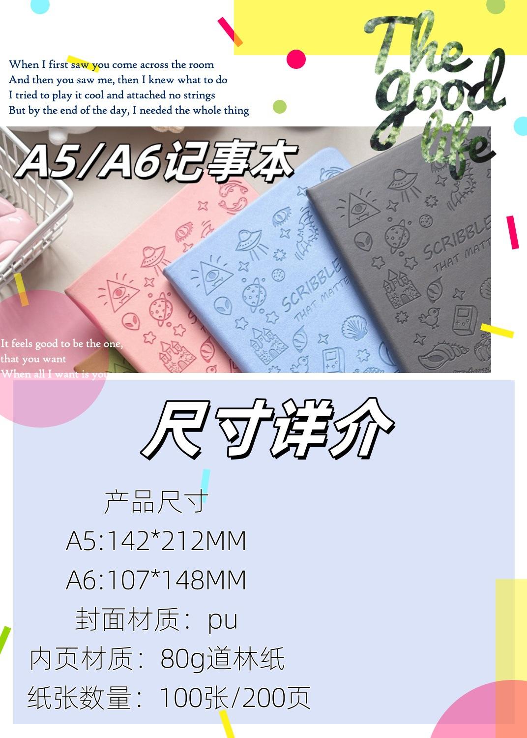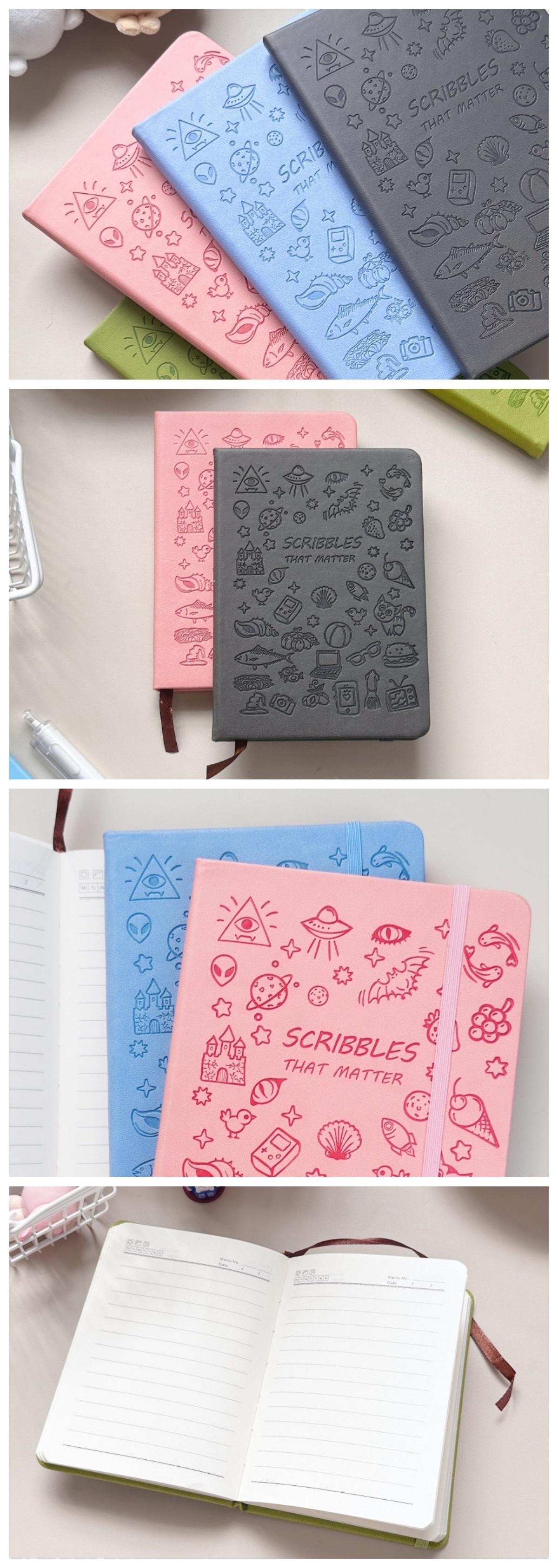 Libreta de notas A5A6 con bonito diseño de mano para estudiantes, con correa estampada con dibujos animados, gruesa