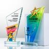 Trofeo de cristal de estrella de cinco puntas de colores, medalla de vidrio de alta calidad, premio para personal destacado de la reunión anual, letras de recuerdo