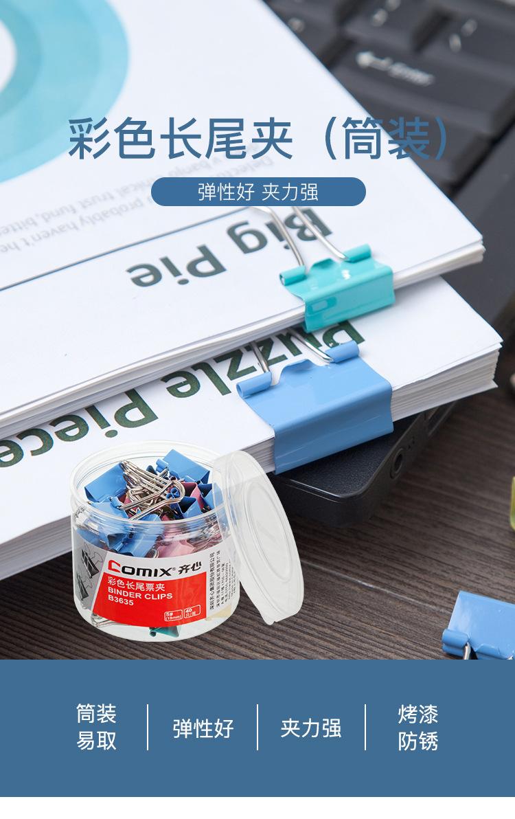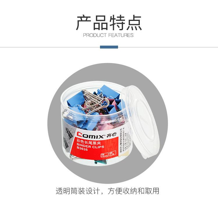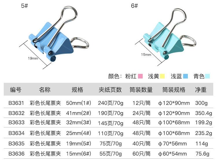 Qixin B3631 clip de archivo clip de cola larga grande metal hierro clip de cola de milano mediano color mixto negro largo