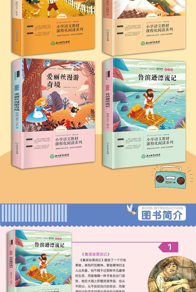 Los 4 volúmenes de Happy Reading Bar sexto grado segundo volumen libros extracurriculares Robinson Crusoe libros extracurriculares