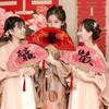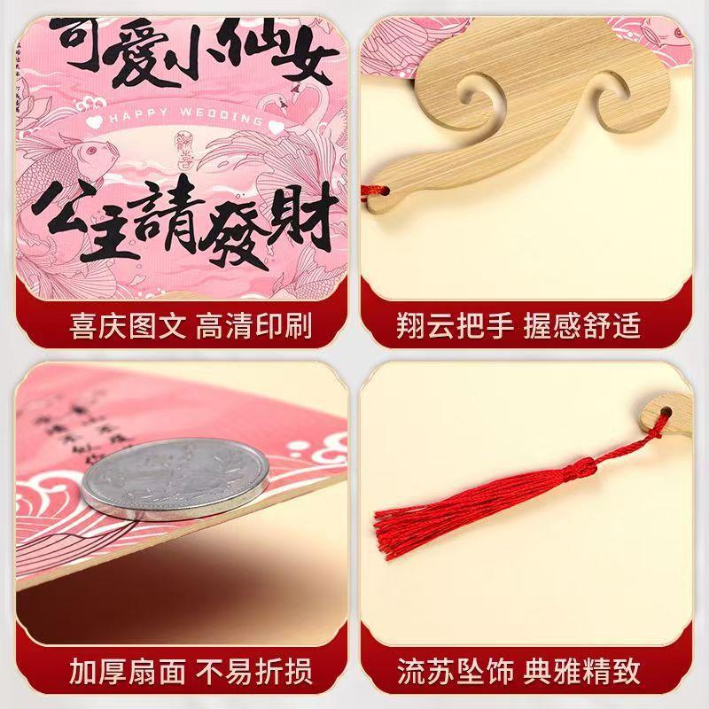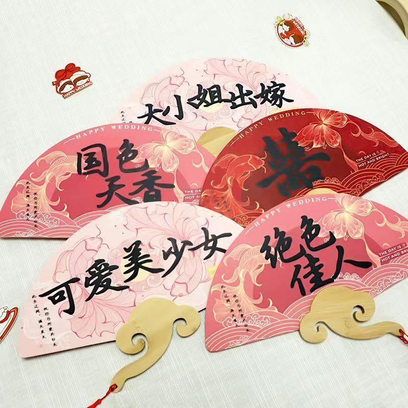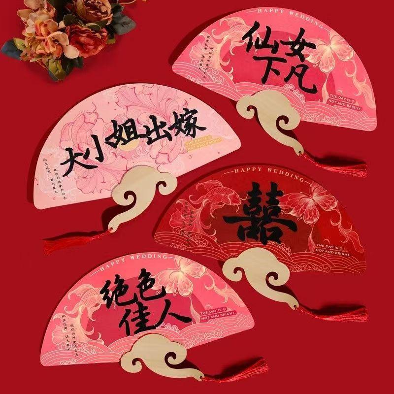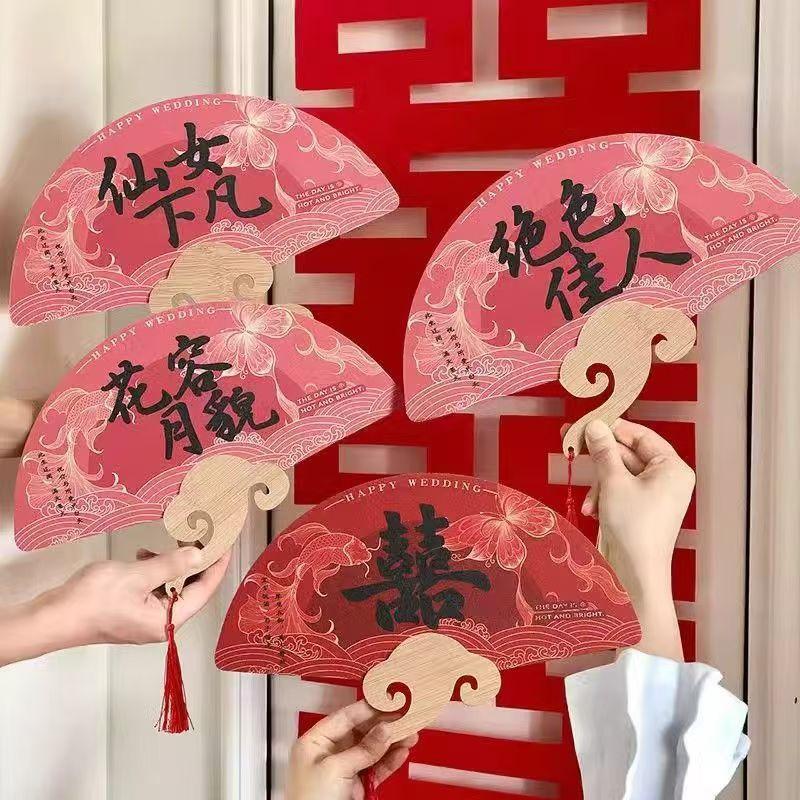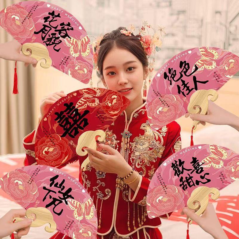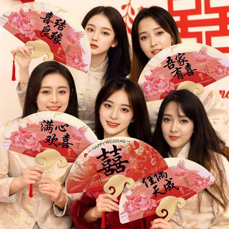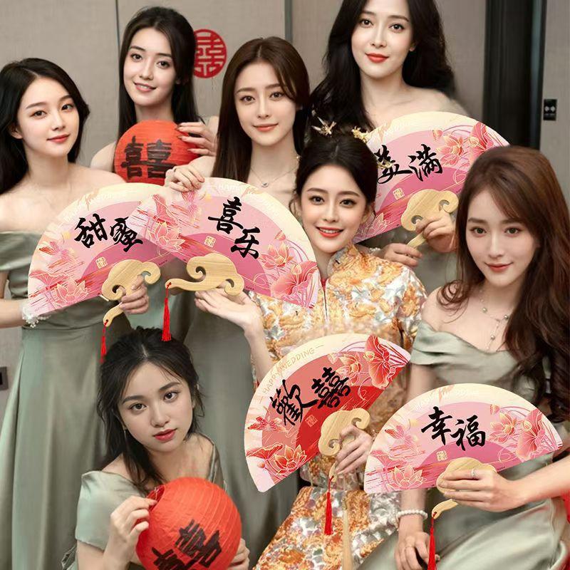 Abanico de bienvenida de doble cara para bodas, estilo chino, para damas de honor, accesorios para fotos de boda